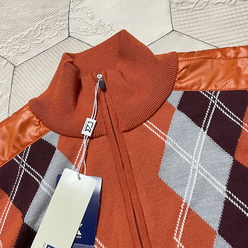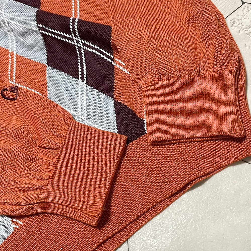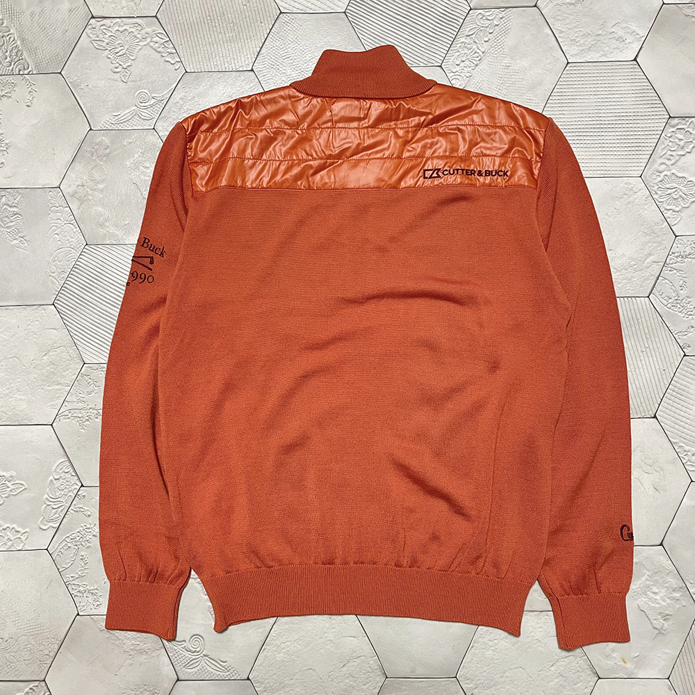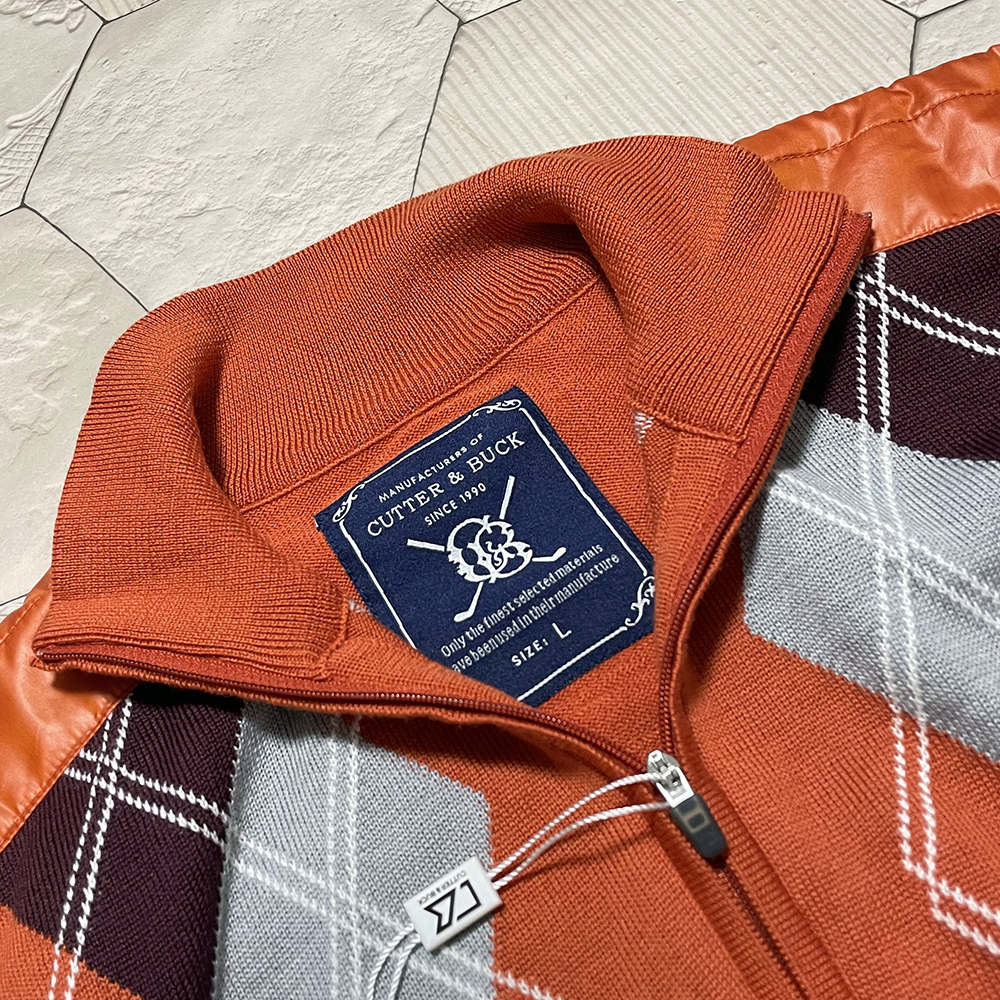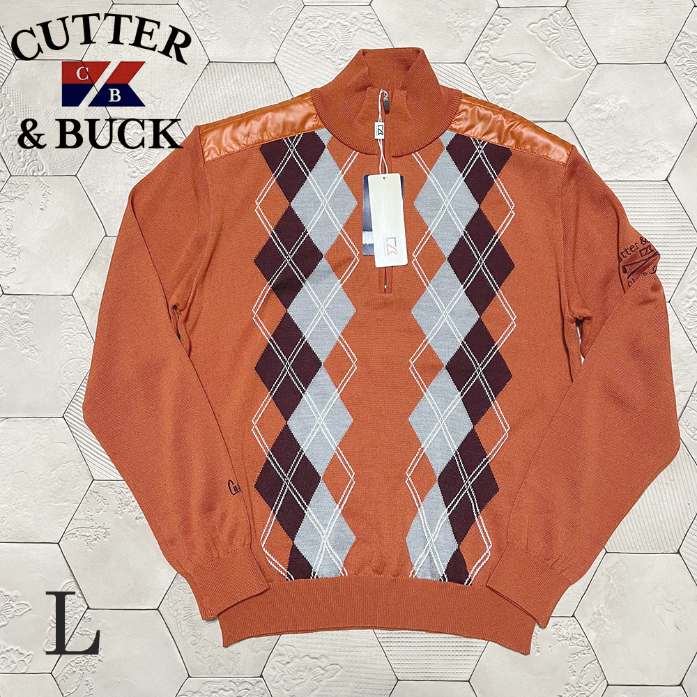 新品 カッターアンドバック 日本製【CUTTER&BUCK】アーガイル柄 ジップ ニットプルオーバー/GOLFニット L ウォッシャブル