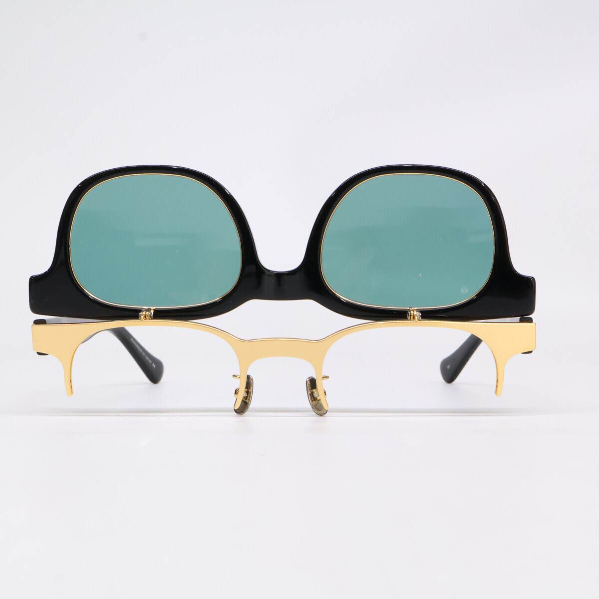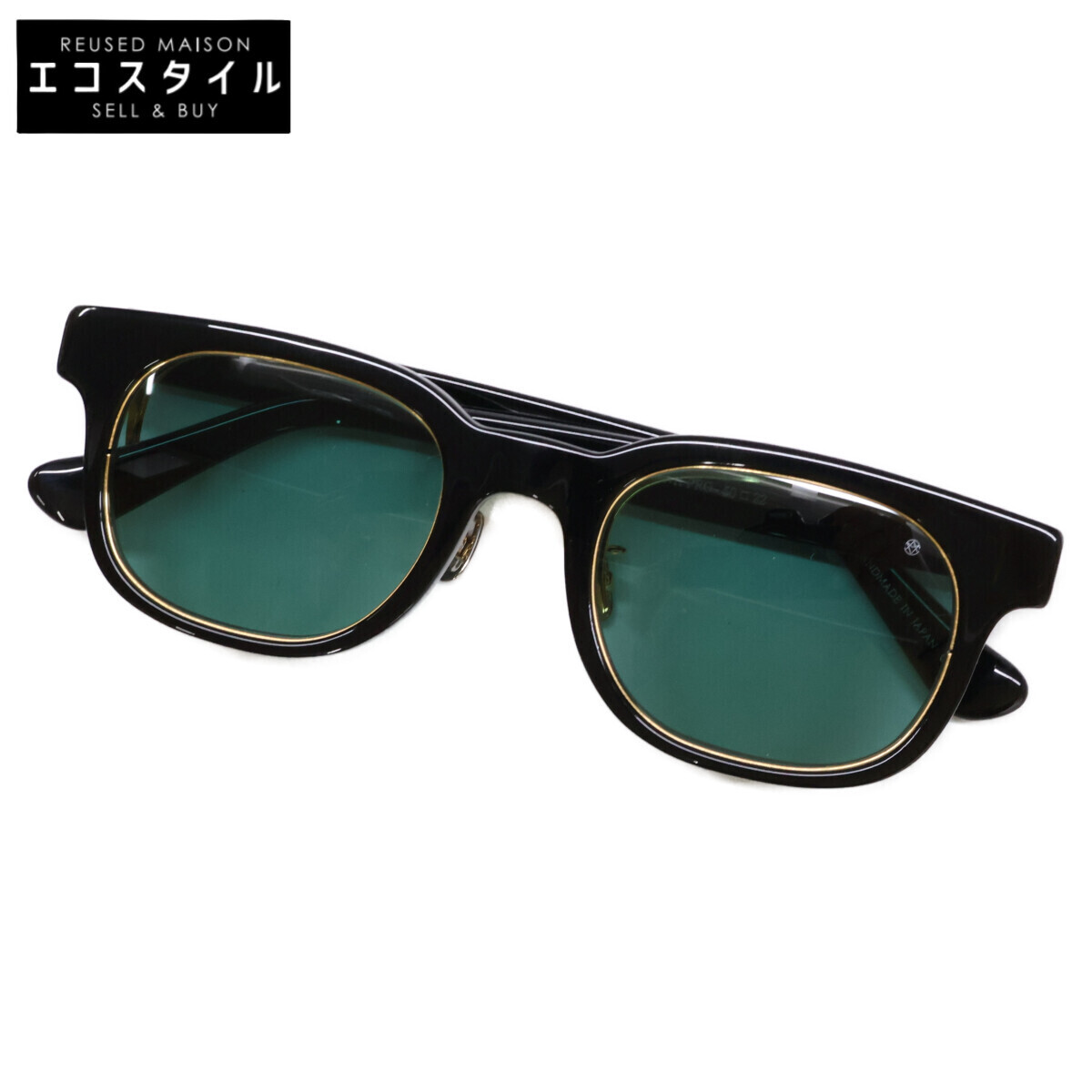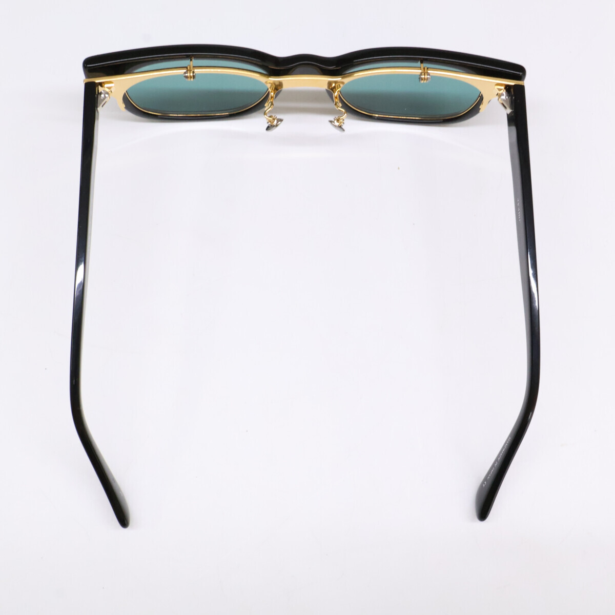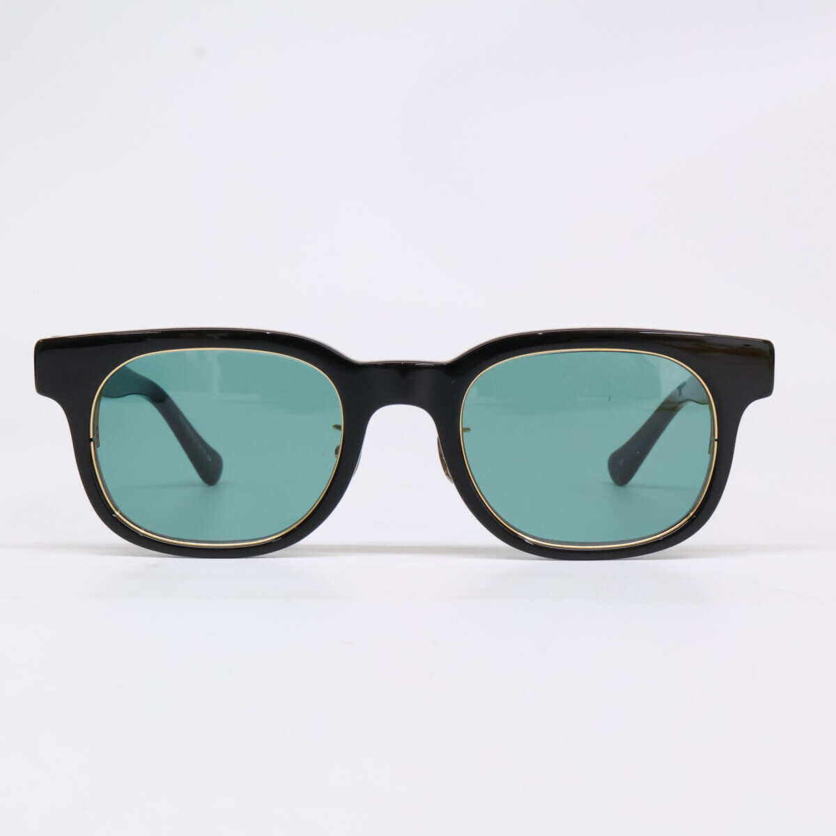 美品 ayame アヤメ TANK PRO BK タンクプロ 跳ね上げ式 レクタングルシェイプ サングラス 50□22 ブラック/エメラルド