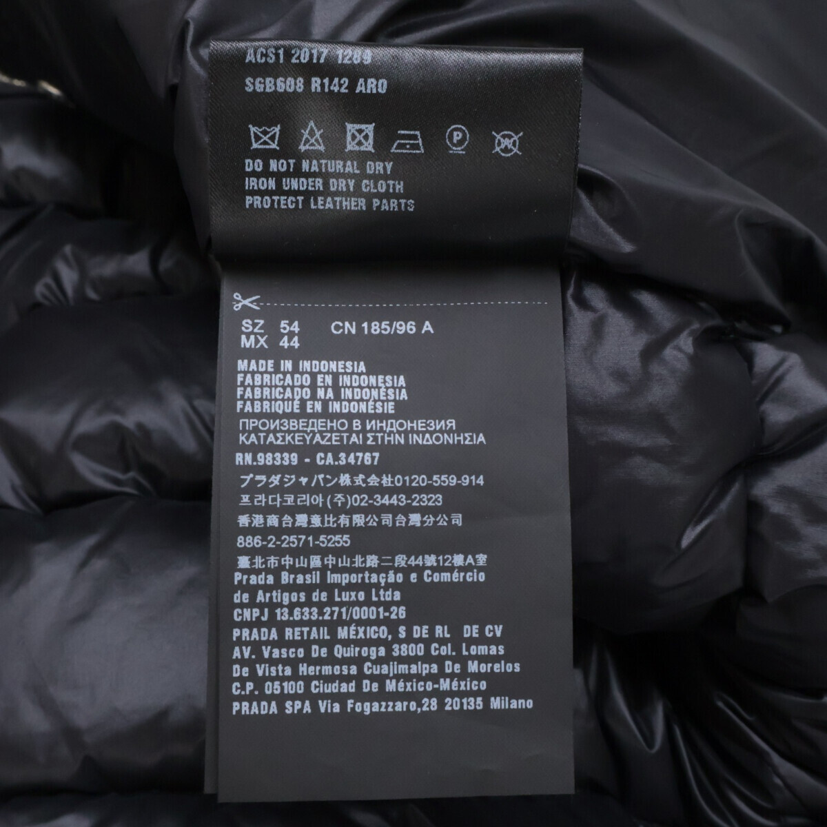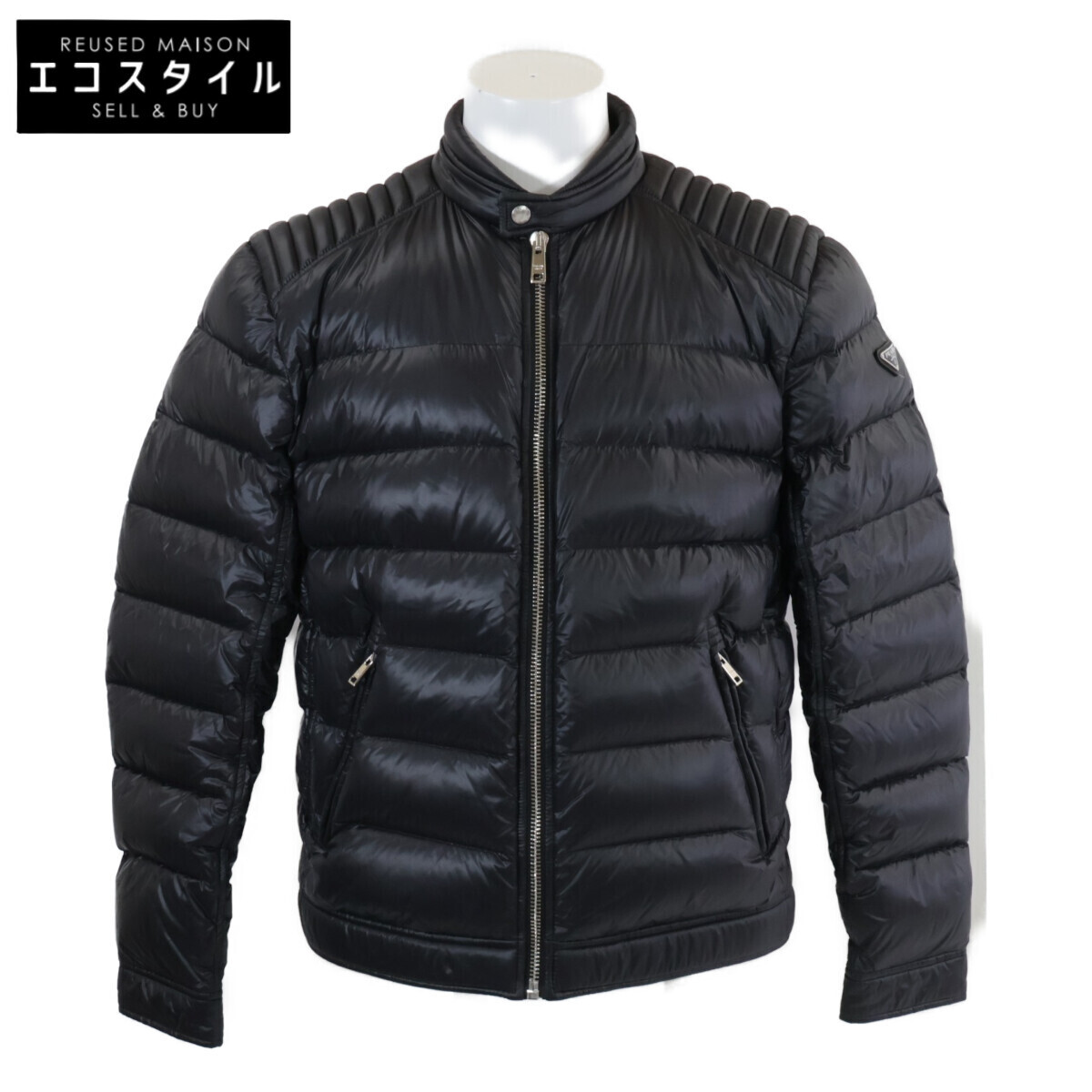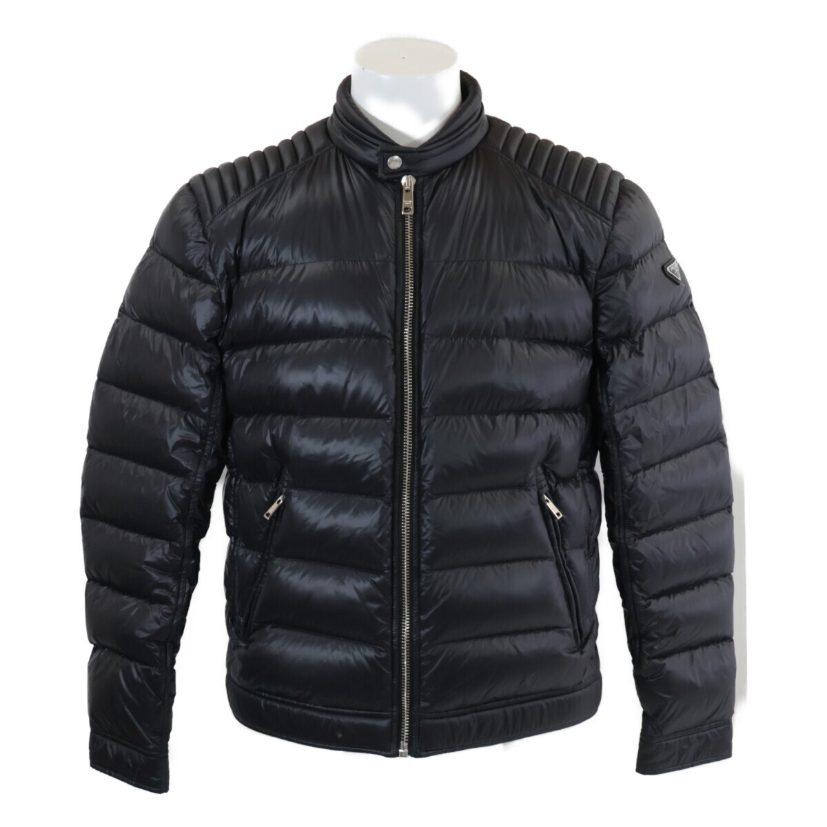 PRADA プラダ 国内正規 SGB608 トライアングルロゴ ナイロン バイカー ダウンジャケット 54 ブラック メンズ