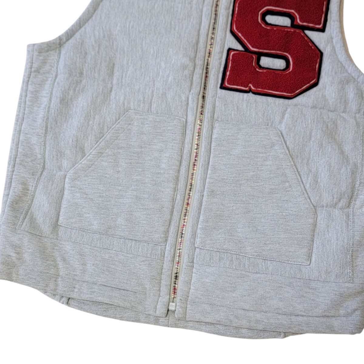 こちらはその中でも菅田将暉さんが着用し、人気が出た80s-90s USA製 CHAMPION REVERSE WEARVE OHIO STATE GREY チャンピオン リバースウィーブ 刺繍タグ の個体を贅沢にHOSUがリメイクしたベスト。