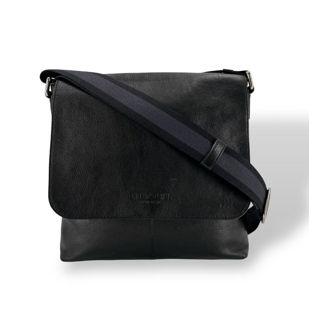 COACH ロゴ型押し シルバー金具 黒 メッセンジャーバッグ