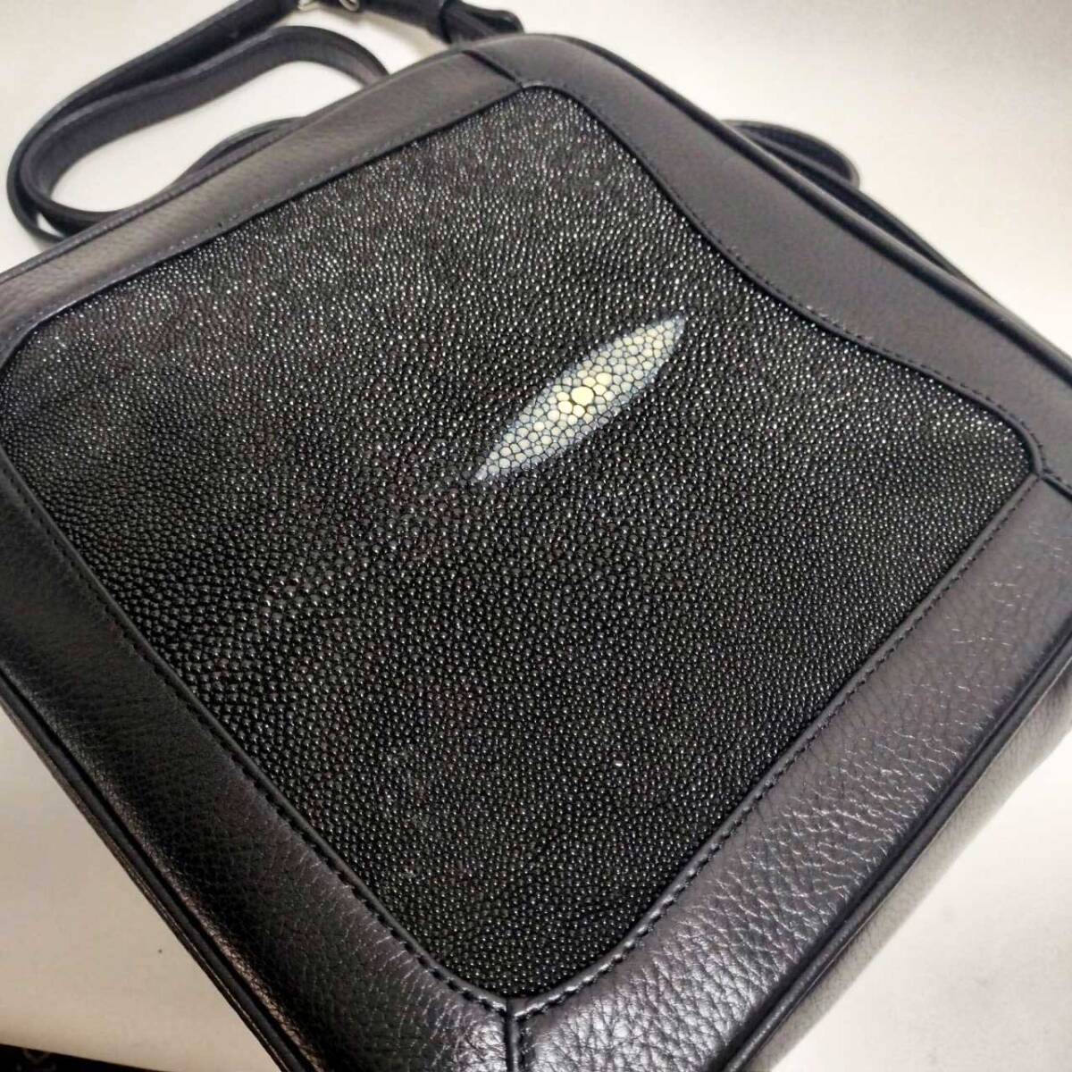 エイ革〈ガルーシャ〉のシンボルともいえる中央の白いマーク、いわゆるスターマークが際立つ大きめポシェットです。