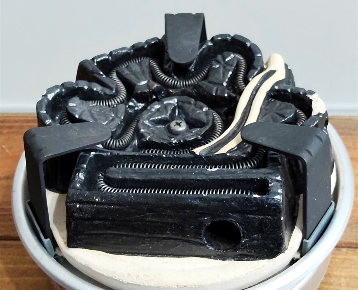 陶器部分に細かな欠けがあります。また、細かな汚れもあります。フレーム部分も擦れや汚れが見られます。動作に問題ありません。状態についてはお写真にてご確認ください。