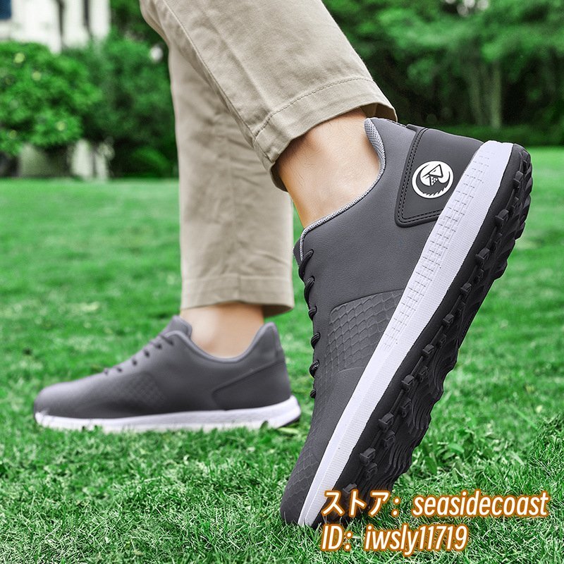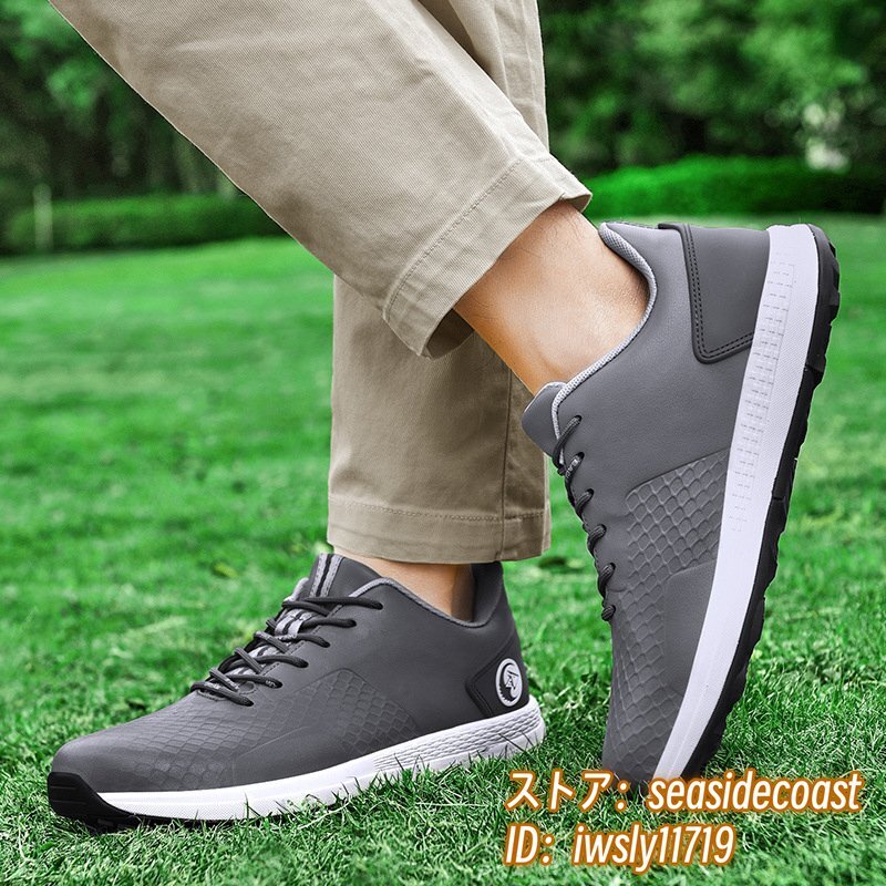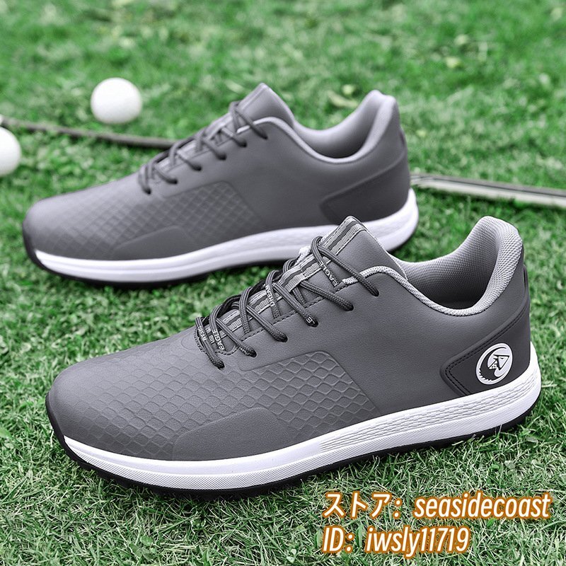 新品特売 ゴルフシューズ スニーカー メンズ スポーツシューズ デニス 運動靴 ウォーキングシューズ 軽量 防水 防滑 耐磨 グレー 26.5cm