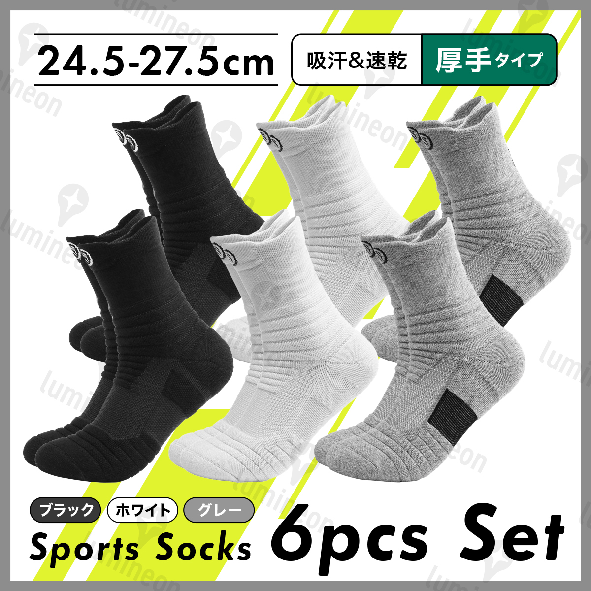 靴下 メンズ ハイ ソックス くつした 6本 セット 野球 靴 シューズ 滑り止め スポーツ ゴルフ バスケットボール サッカー 白 黒 g117h