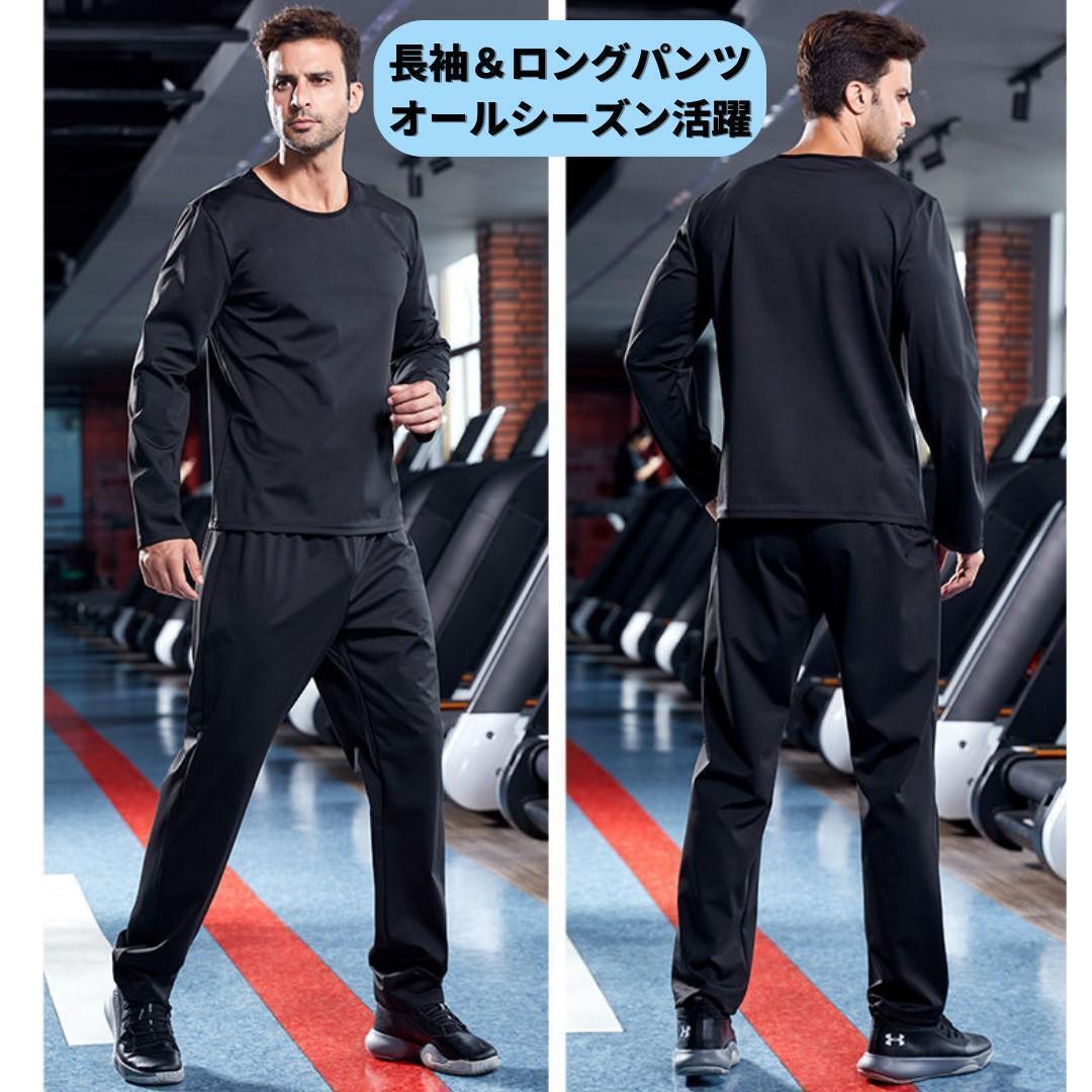 表面にはポリエステルのストレッチ素材を使用した長袖&ロングパンツの上下セットのサウナスーツ