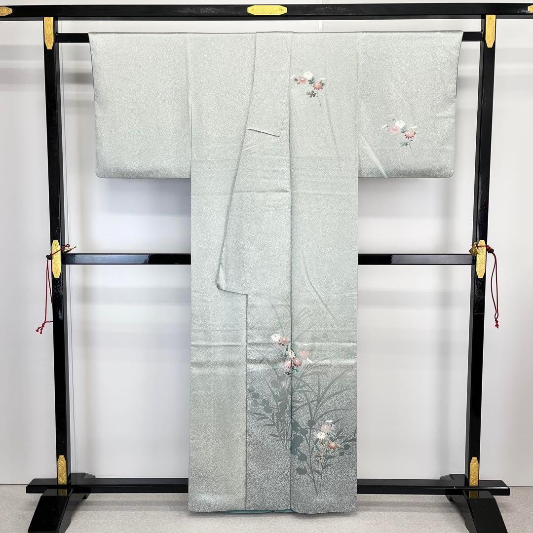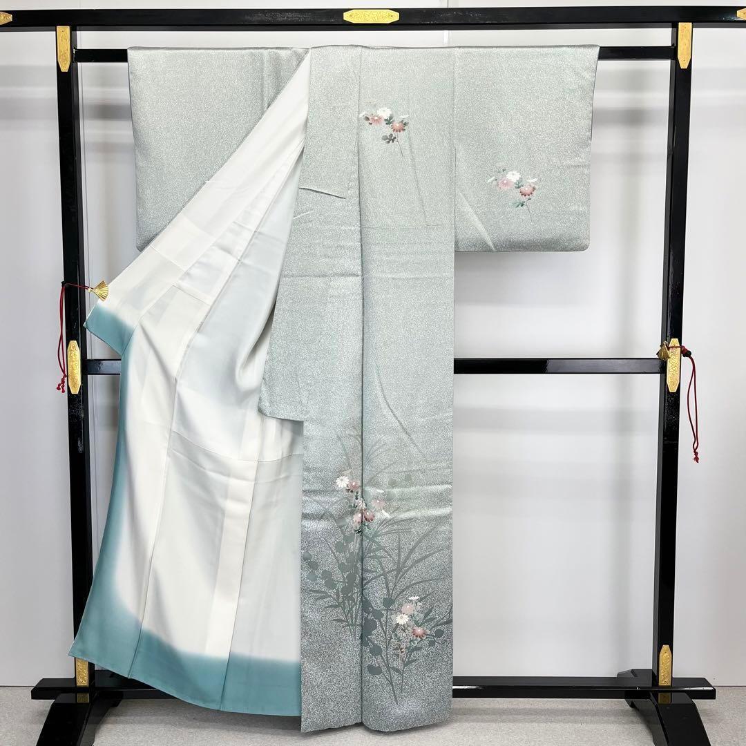 付下げ 上品な草花模様 叩き染 金彩 暈し 裏葉色 K-4271 着物 きもの kimono 和服 和装 中古 リサイクル着物 【送料無料】