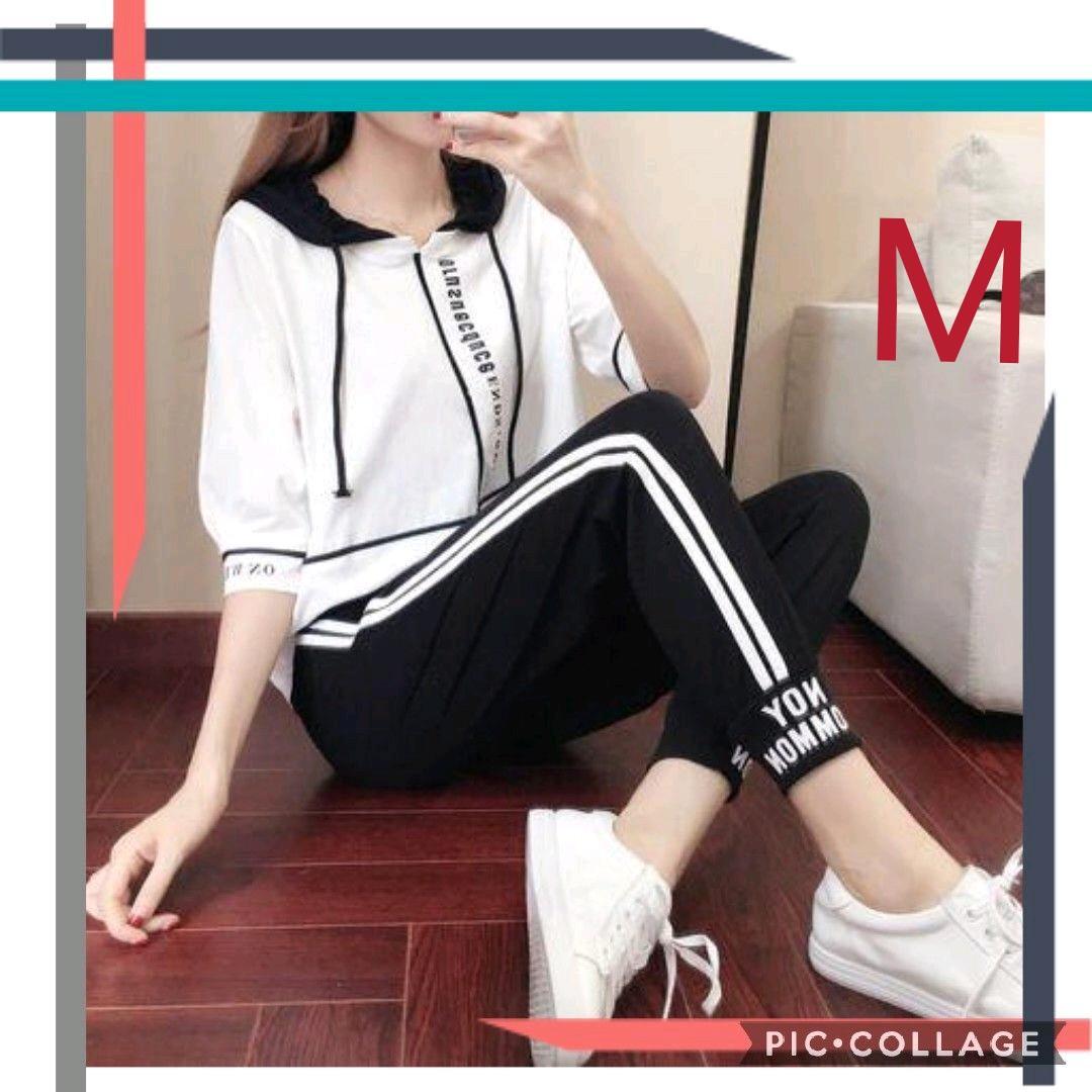 白黒色 レディースジャージ サイズM セットアップ  ジョギングウエア 上下セット 部屋着 ランニングウエア 新品未使用