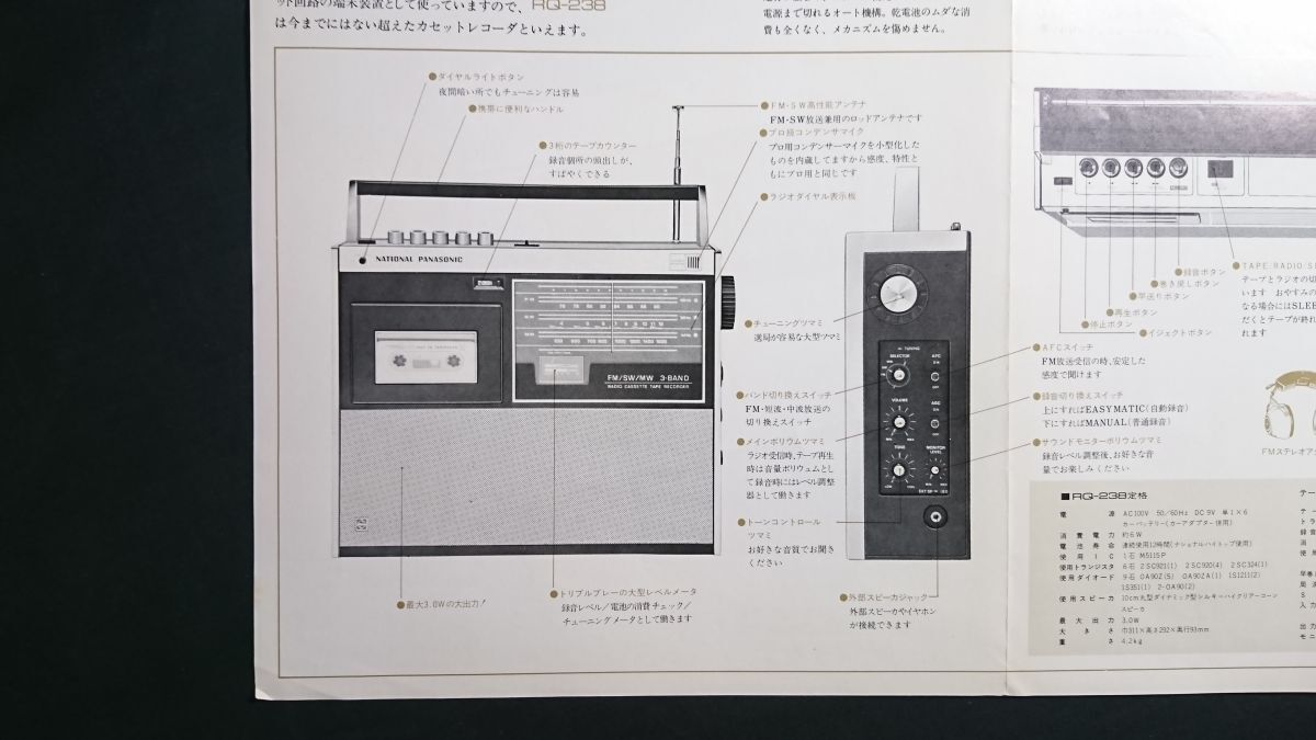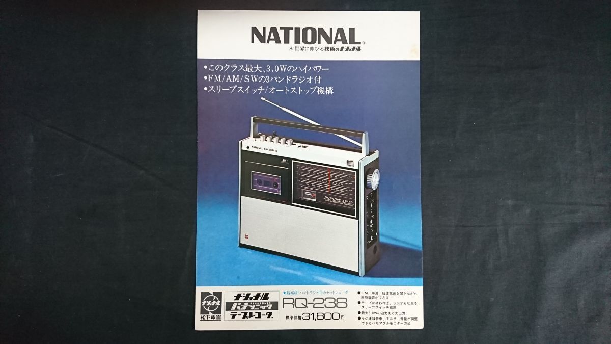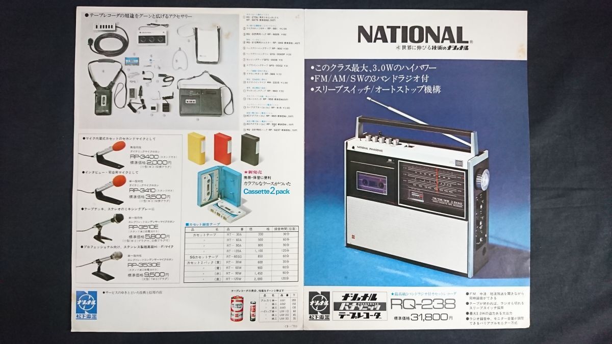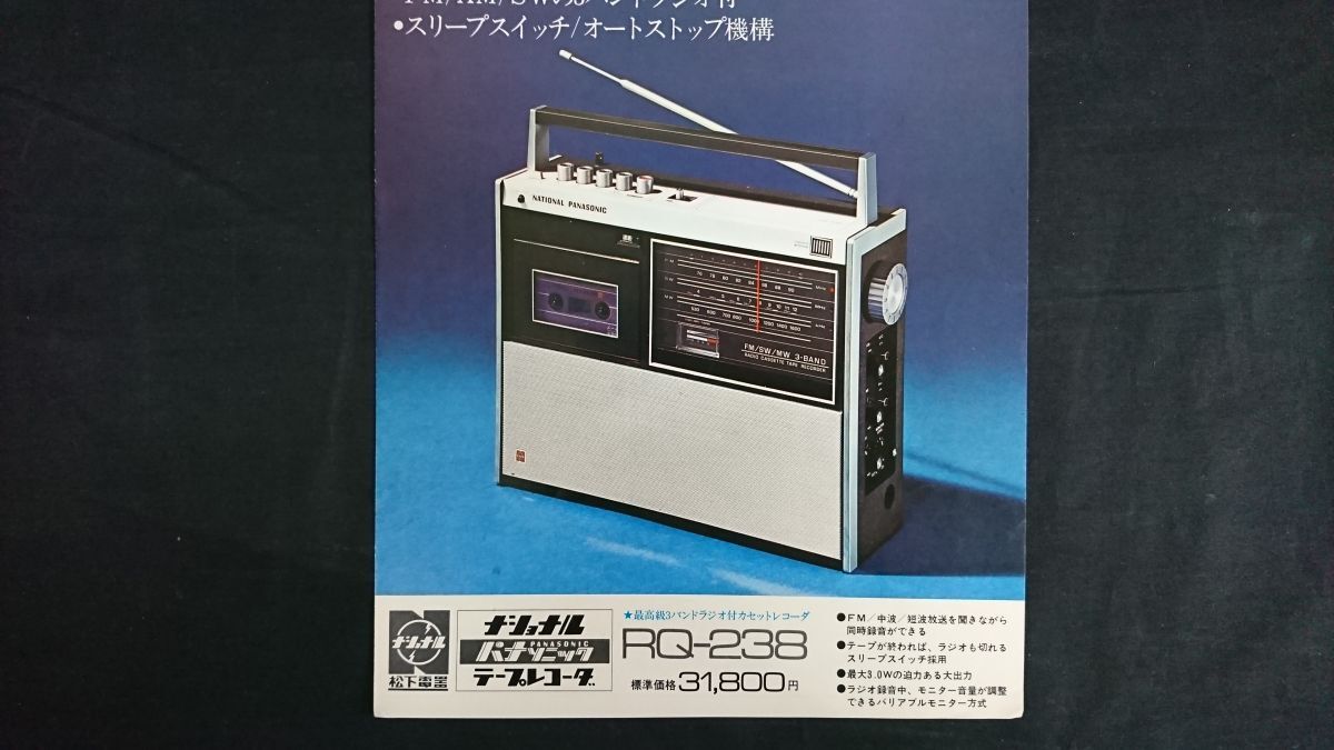 【昭和レトロ】『Nationl(ナショナル) 最高級3バンドラジ付き カセットコーダー RQ-238 カタログ 1971年9月』松下電器産業株式会社 | |