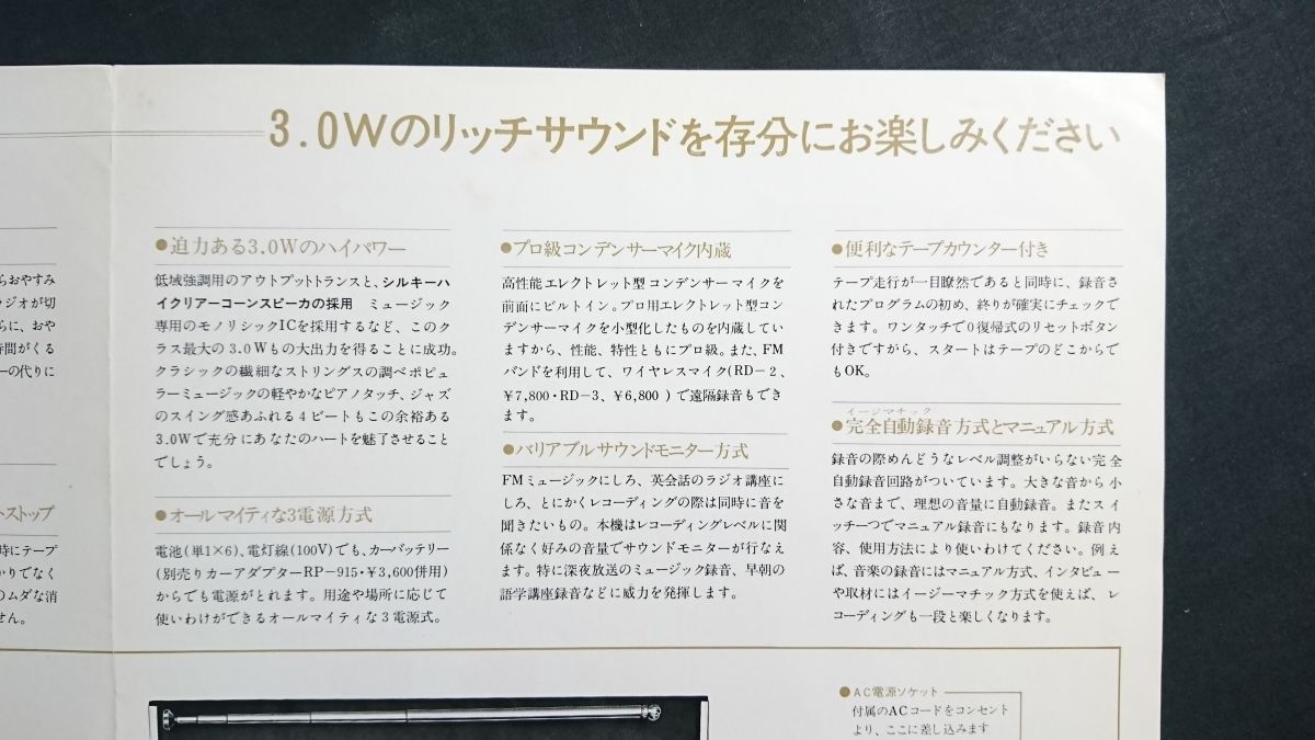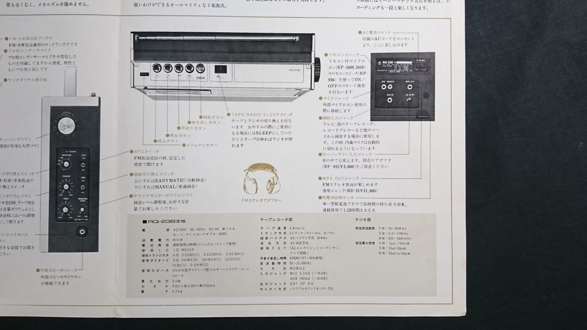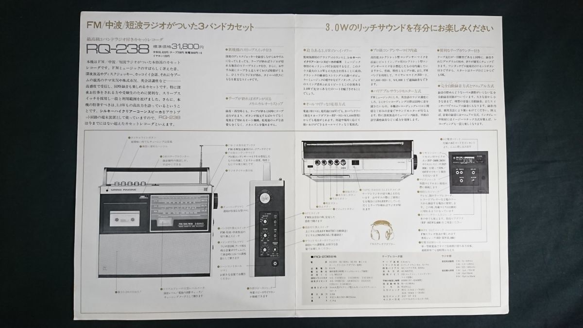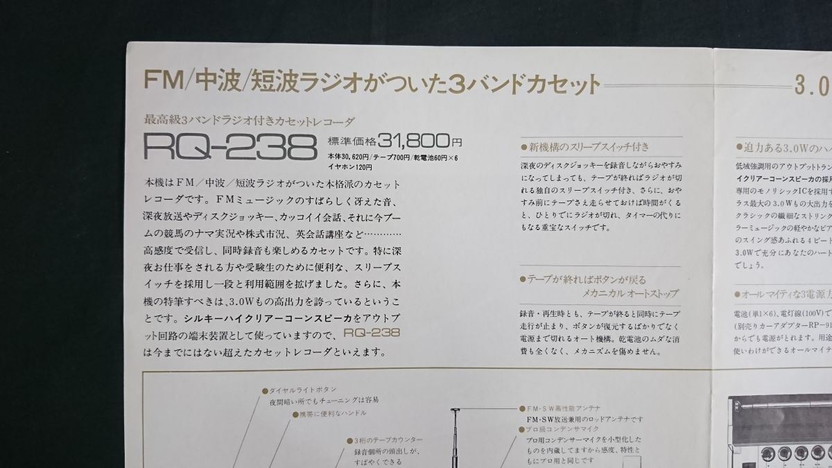 【昭和レトロ】『Nationl(ナショナル) 最高級3バンドラジ付き カセットコーダー RQ-238 カタログ 1971年9月』松下電器産業株式会社 | |