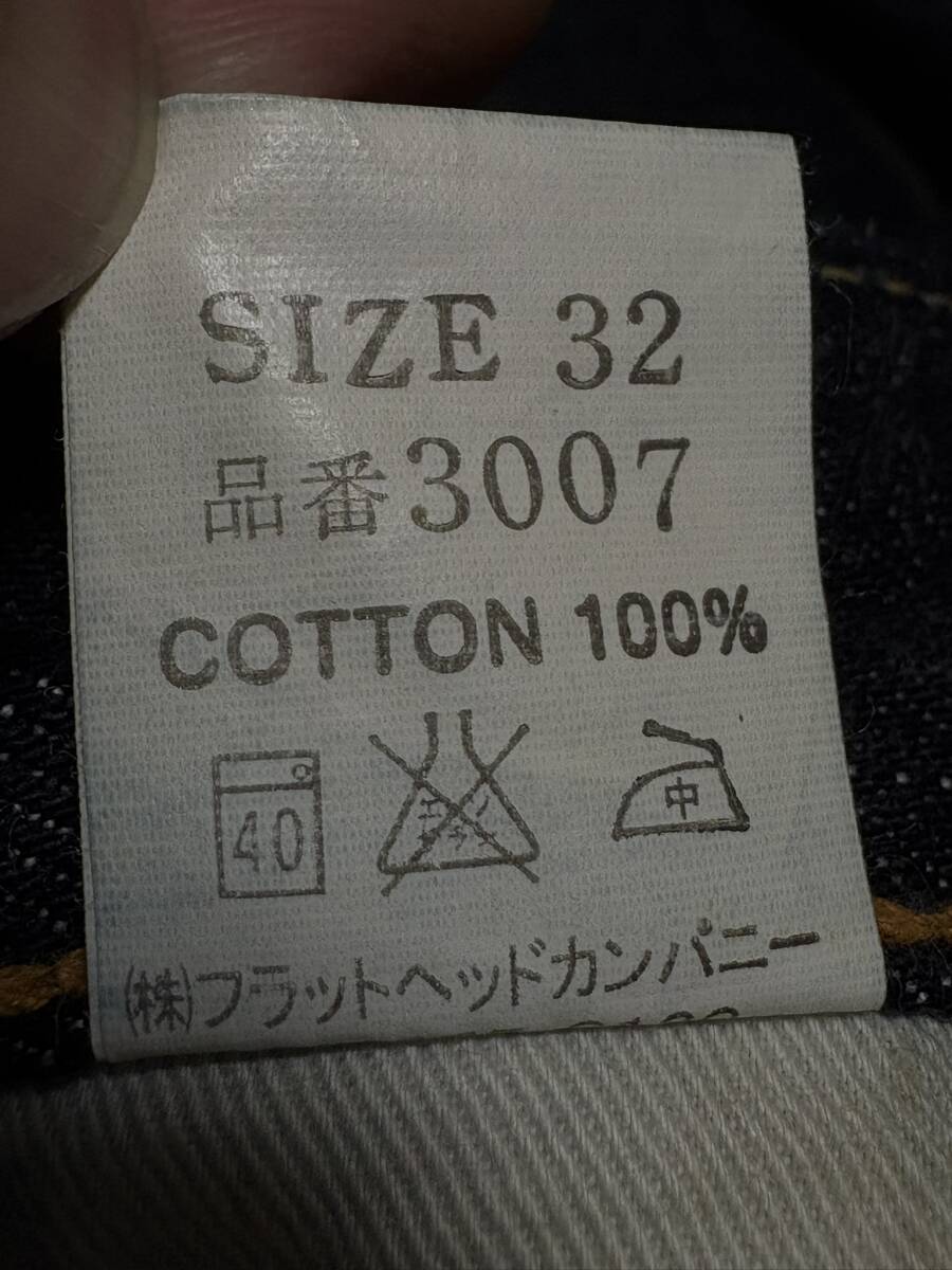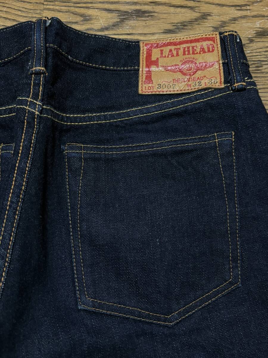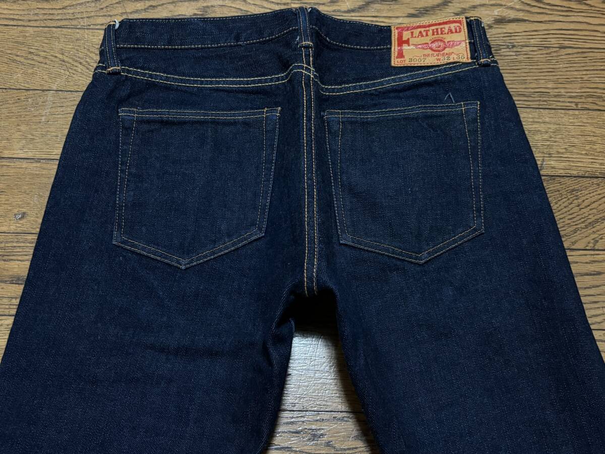 ※THE FLAT HEAD ザ フラット ヘッド LOT 3007 ブーツカット セルビッチ デニムパンツ 未裾直 日本製 濃紺 32   BJBE.I