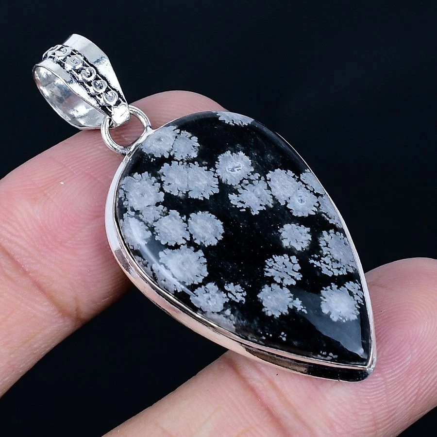 オブシディアン 黒曜石 ペンダント 手元にあります。 今回限り スノーフレークオブシディアン 925 シルバーメッキ 5.207㎝