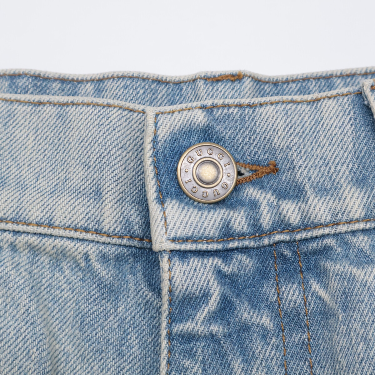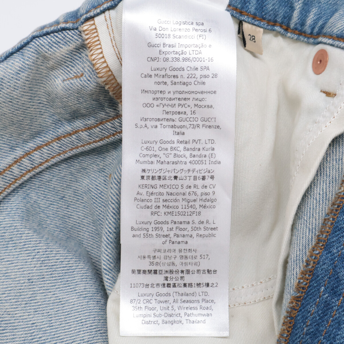 新品同様/国内正規 GUCCI グッチ 774078 ターンアップ ウォッシュド ジップフライ デニムパンツ 28 ライトブルー メンズ