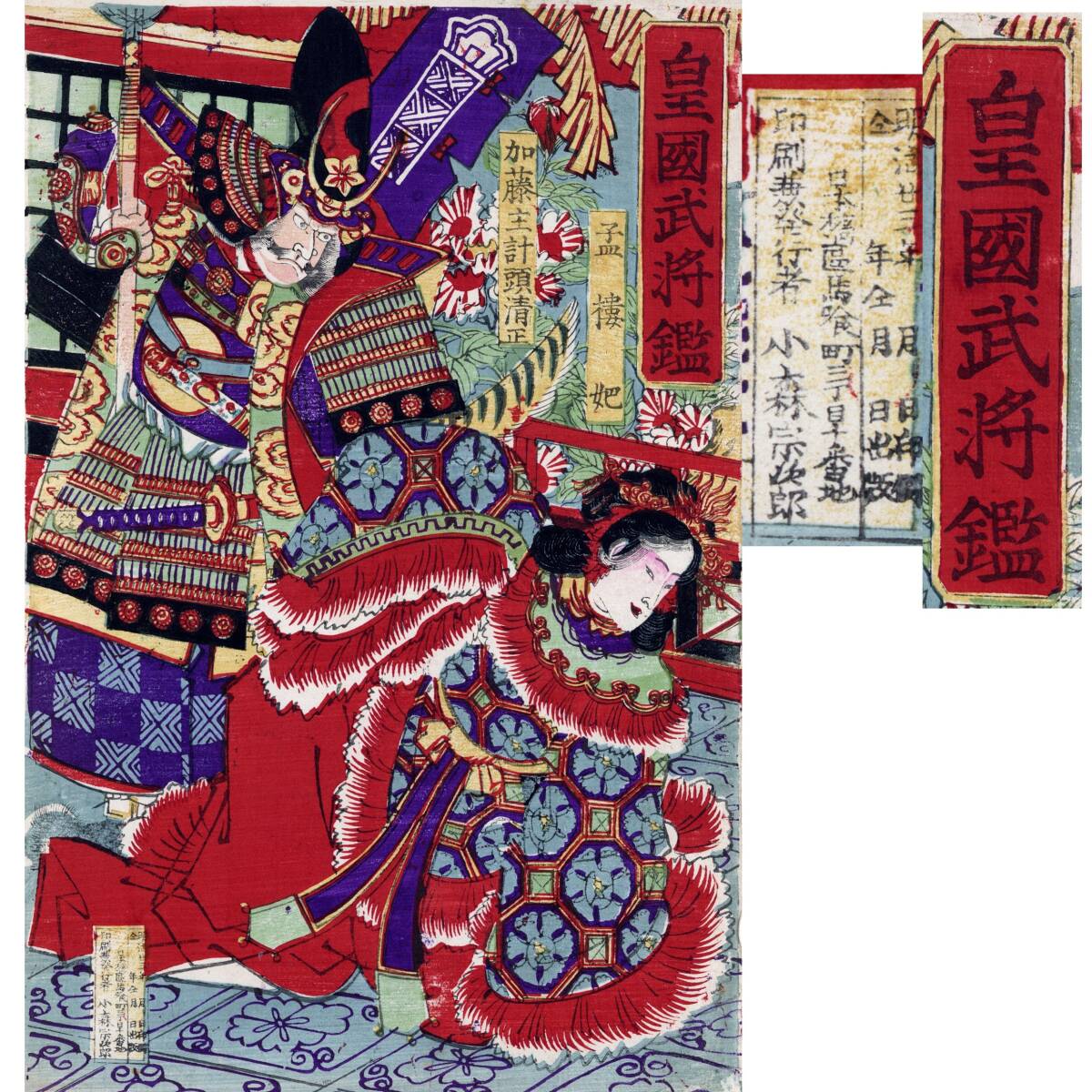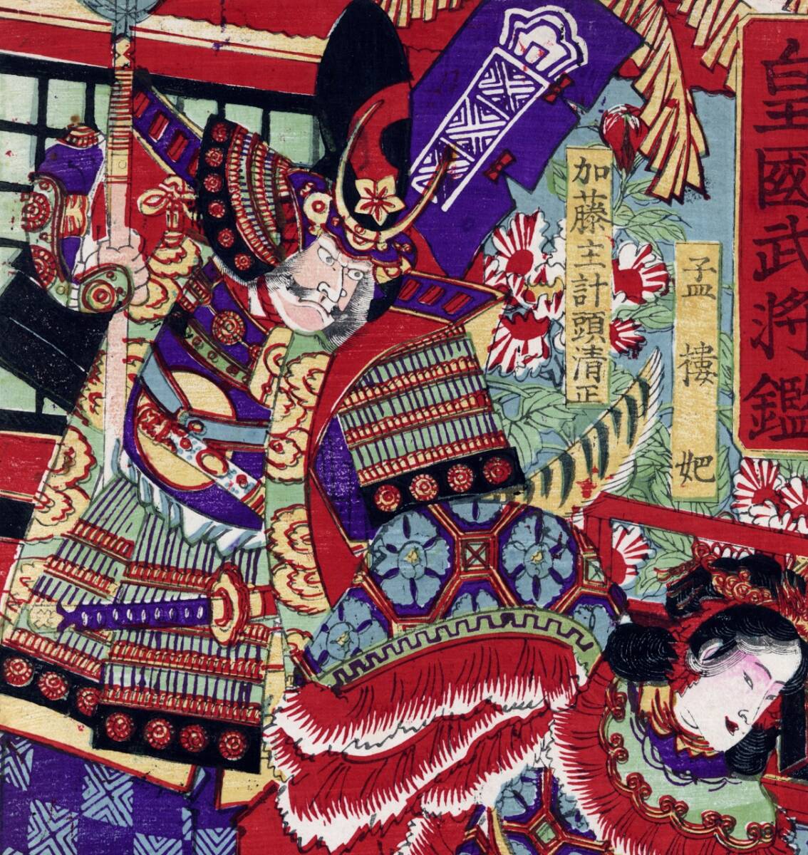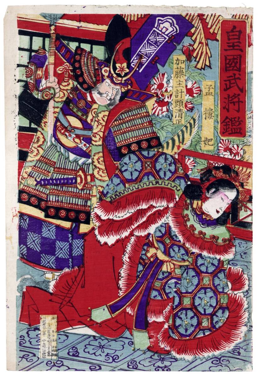 「真作」皇国武将鏡 加藤清正 孟樓妃 浮世絵 明治23年(1890) 浮世絵 妖怪 幽霊 北斎 歌川国芳 菊川英山 豊国 国周 英泉