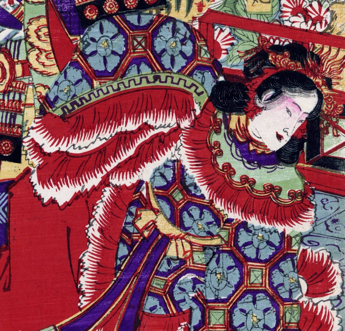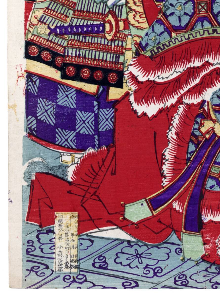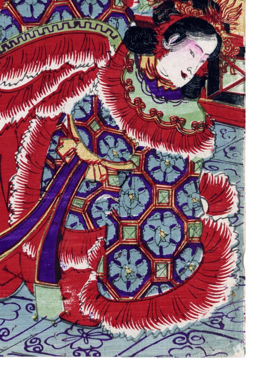 こちらの浮世絵作品は明治期に活躍した月岡派浮世絵師の木版画作品です。状態もよく傷や汚れもありません。