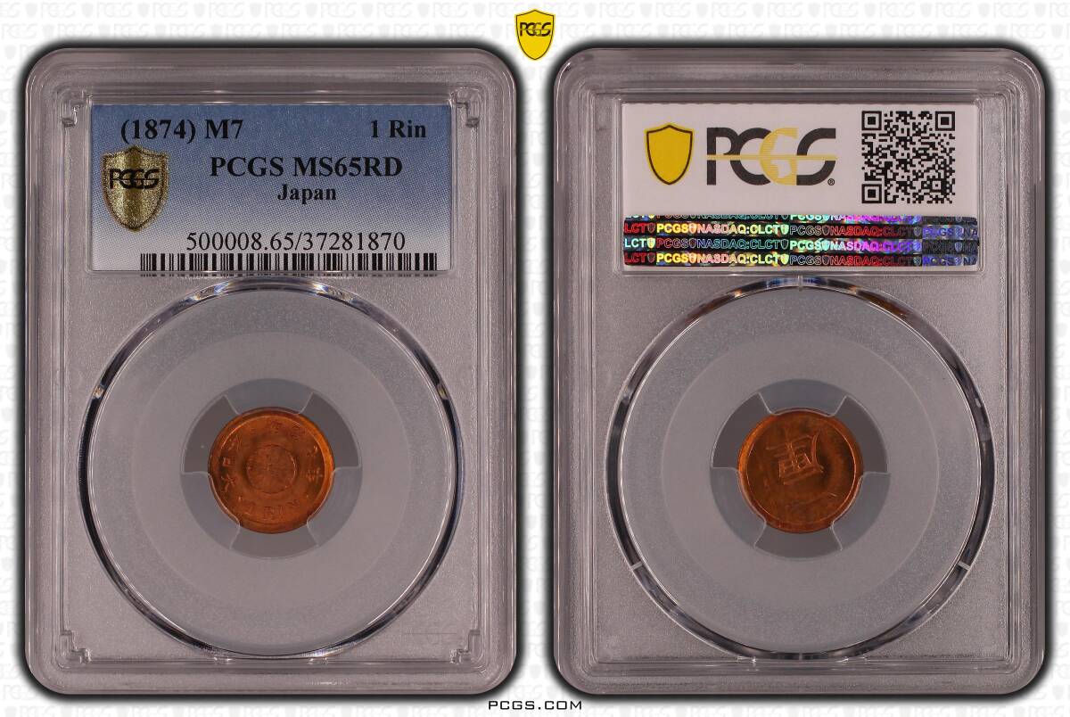 真贋保障 明治7年(1874) 一厘銅貨 PCGSケース入り MS65RD