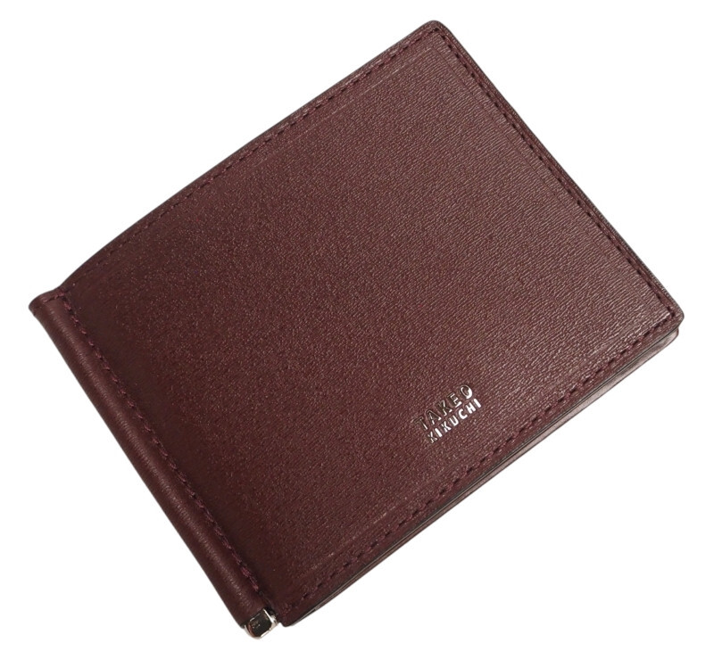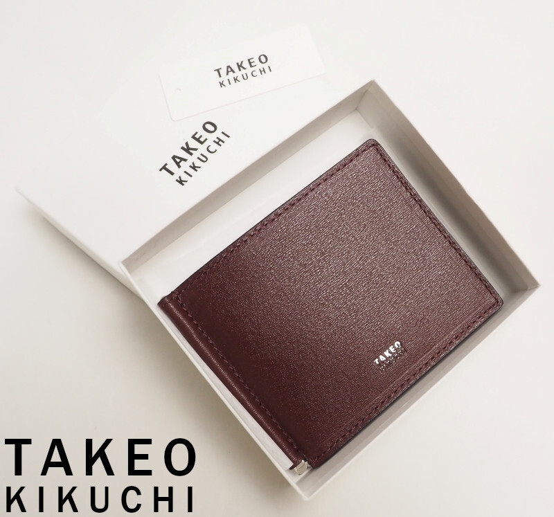 新品正規1.6万円 TAKEO KIKUCHI タケオキクチ マックス 牛革 レザー 札ばさみ マネークリップ ボルドー(BRD) 728614