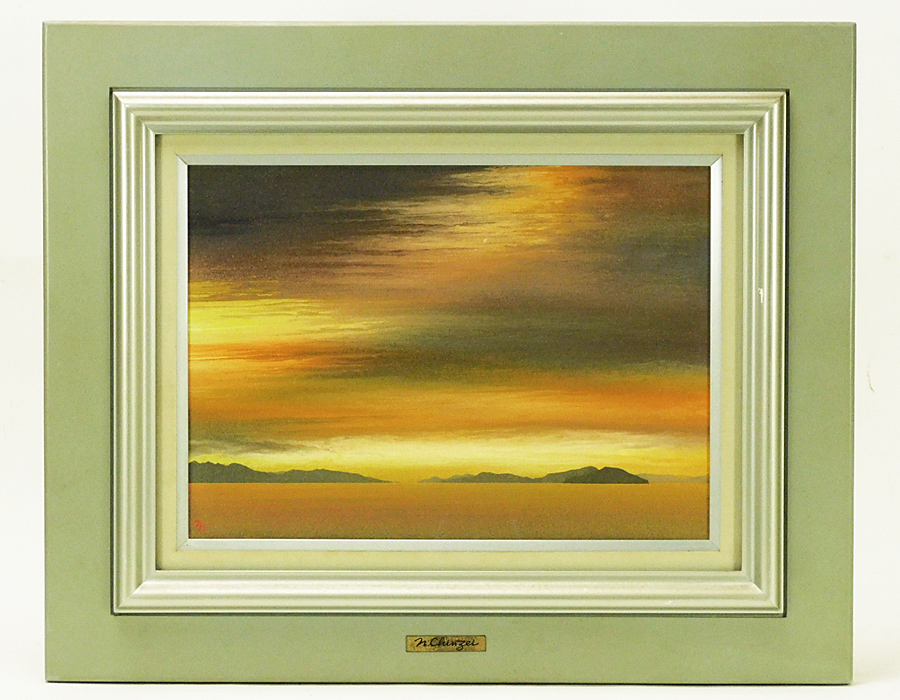 鎮西直秀 光彩の譜 瀬戸内海 F4 油彩 額装 1987年 専用タトウ 現代洋画精鋭選抜展金賞受賞 s25090205