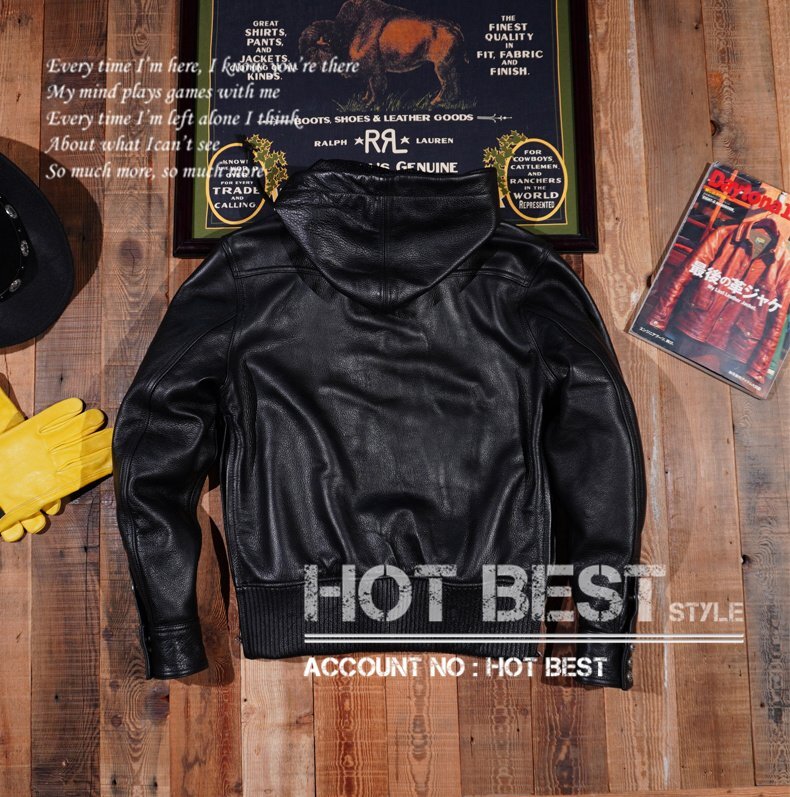 1.3mm カウハイド フーデッドパーカー レザージャケット ボマー ボンバー ライダース イタリアンレザー 牛革 Y1234/4XL