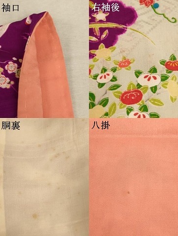 着物【正絹】の状態は接写画像のように袖口・右袖後に薄い汚れ、胴裏にシミ、八掛に点汚れがございますが その他特に目立ったシミ汚れなどもなく大変良い状態です。 大変上質な逸品になります。 お安く出品致しますので、是非この機会にいかがでしょうか? ※アンティークになりますのでお品物の状態の感じ方には個人差がございます。 ご理解の上でのご入札をお願い致します。 |