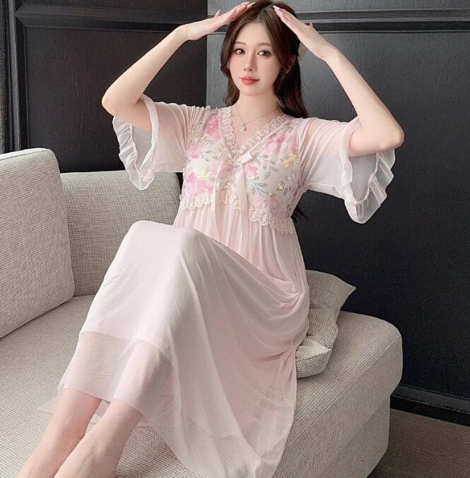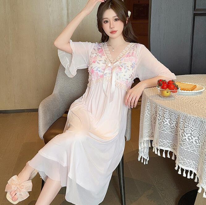 M0913  パジャマレディース● 20代30代40代 着心地抜群   上質  ● 大活躍  ワンピース  リボン飾り