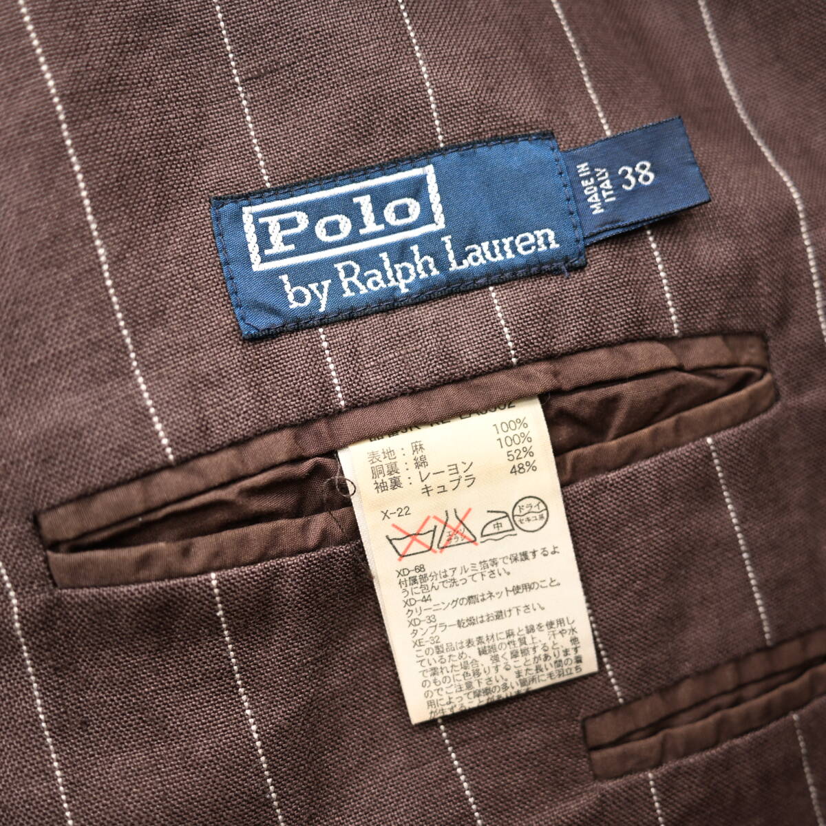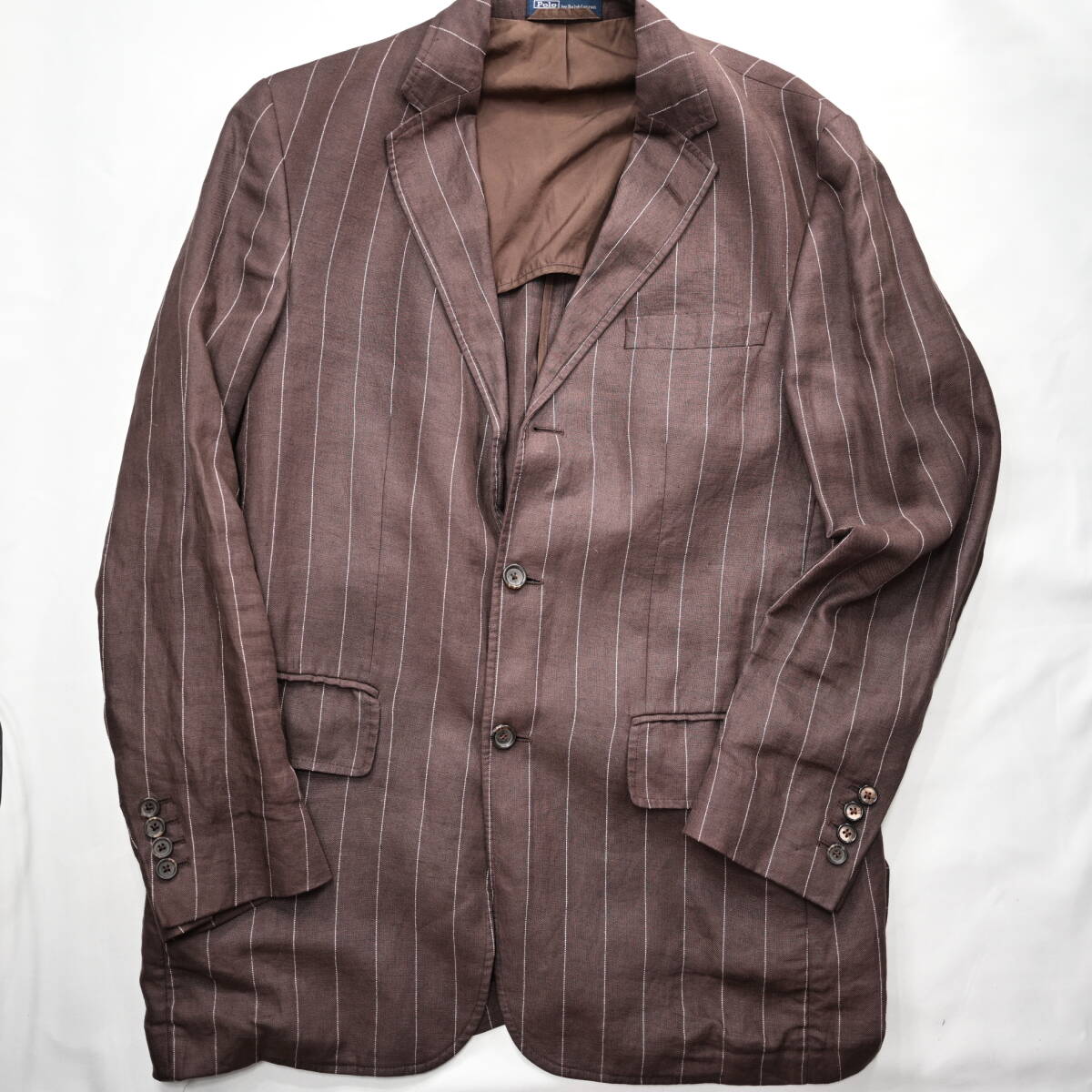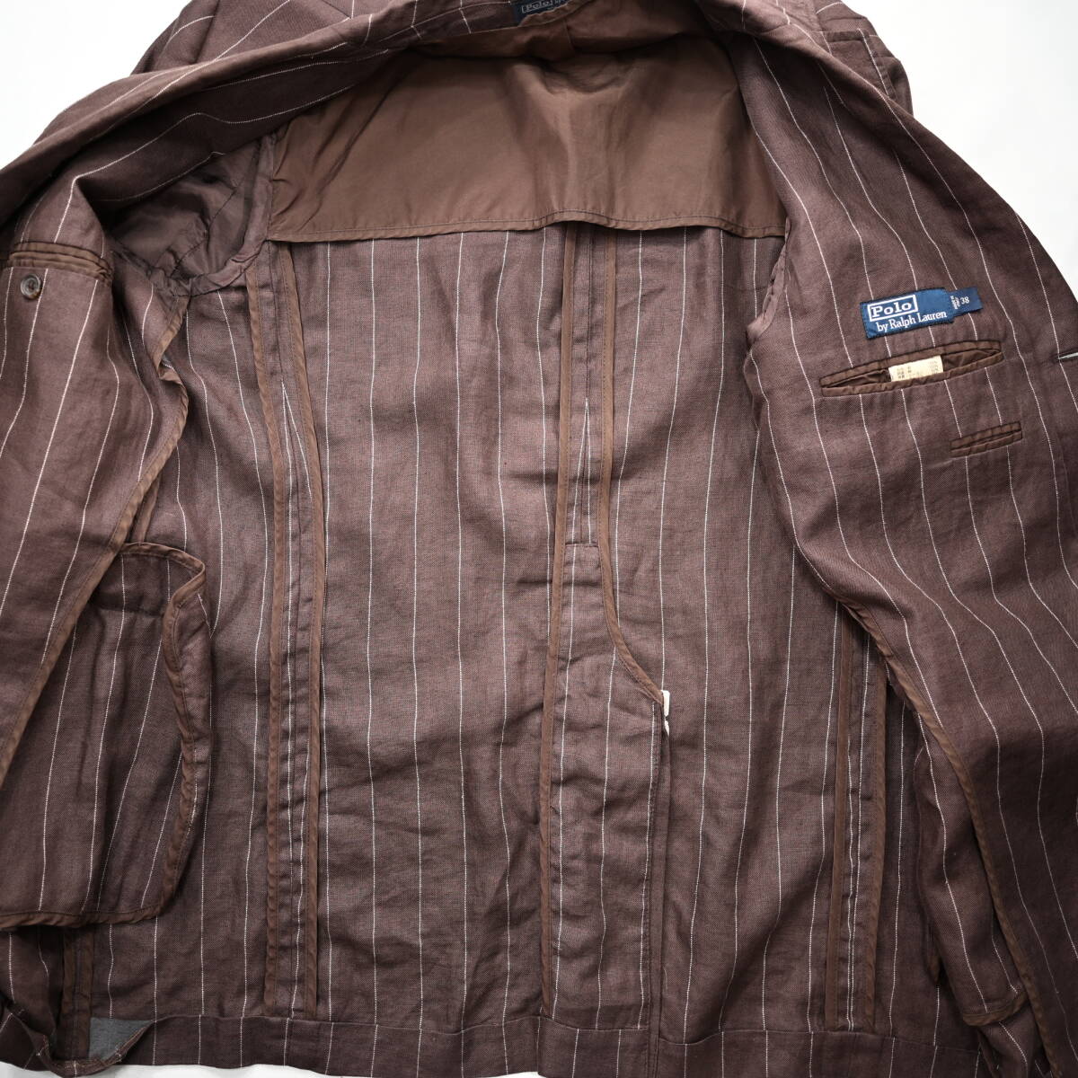 【POLO ラルフローレン】イタリア製ストライプ柄リネンテーラードJKT茶38