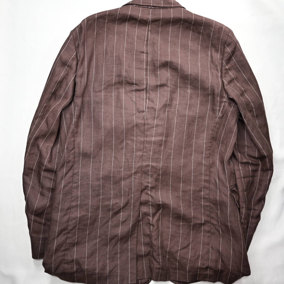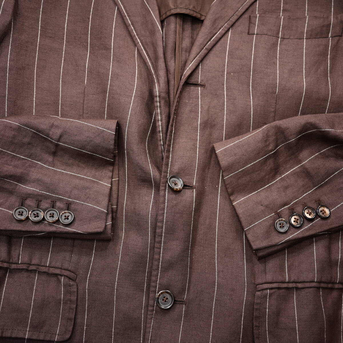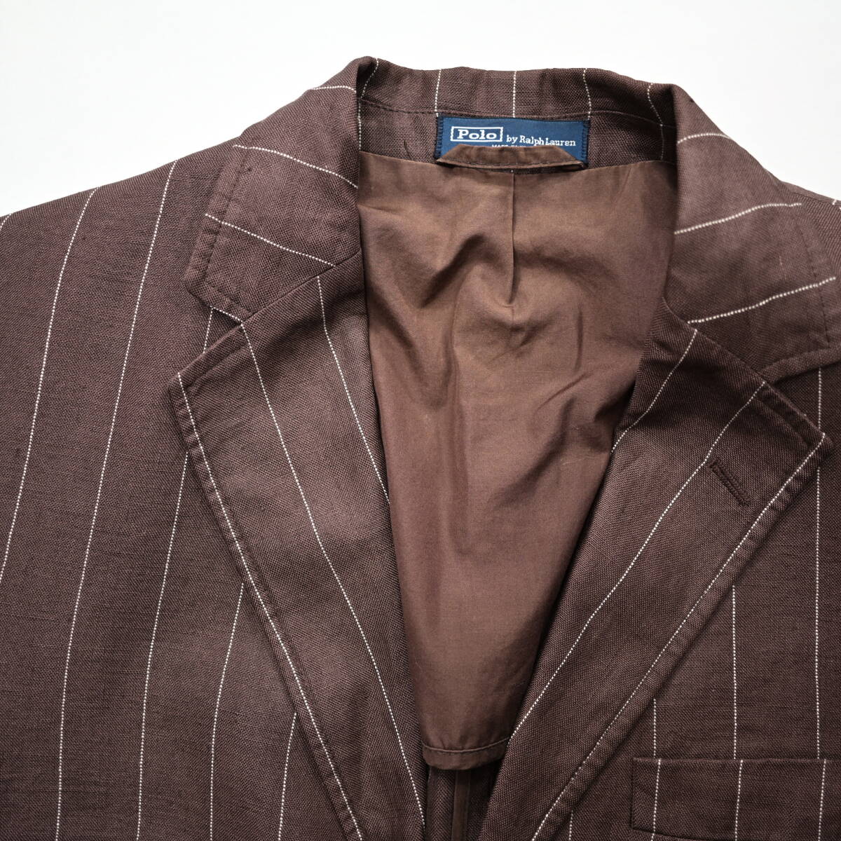 【POLO ラルフローレン】イタリア製ストライプ柄リネンテーラードJKT茶38