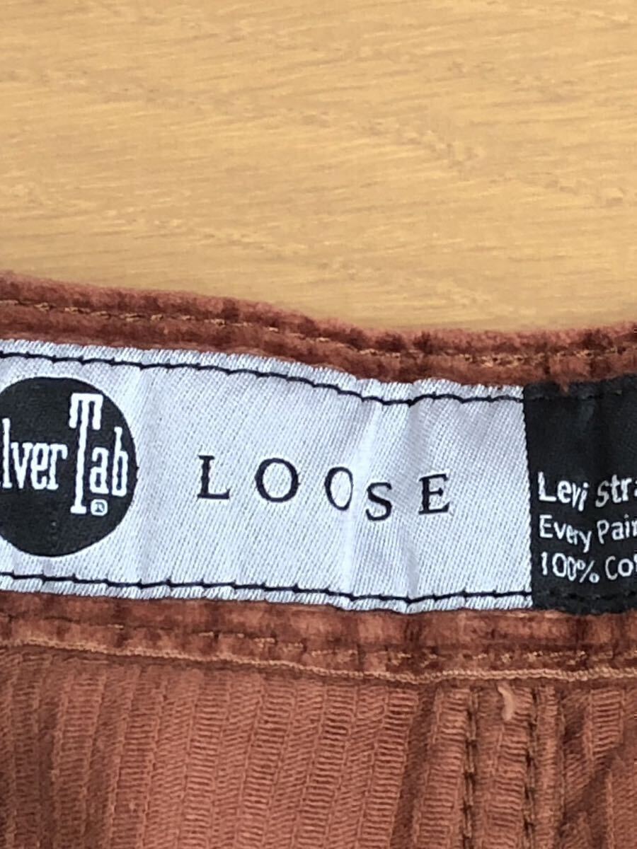 Levi’sのコンテンポラリーラインとして、1985年にスタートしました。リーバイスのシンボルであるバックポケットのタブがシルバーで、その独特の雰囲気のワイドで緩さがあるリラックスシルエットは、現在でもストリートやミュージック等のカルチャーと融合し、若者を中心に爆発的な人気を博しているラインです。女性のファンも多くジェンダーフリーで楽しめるsilver Tabコレクションは、昨今の日本の古着市場でも最も多くリサーチされている人気ラインの一つです。Silver Tabを代表するFitの一つである「LOOSE」。全体的にルーズでゆとりがありながらも、裾に向かって細くなるテーパードになっているので足元が引き立つのが魅力のシルエット。両サイドにポケットを配して近年人気の高まってきているカーゴパンツ要素をプラス。は90年代の雰囲気を感じさせるブランカラーの太畝コーデュロイ生地がポイントです。足元にボリュームを出しながら穿いて頂くのがオススメの一本です。