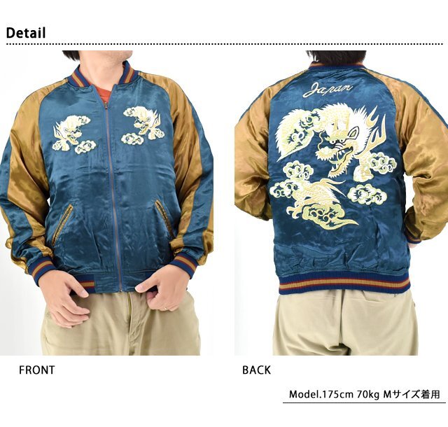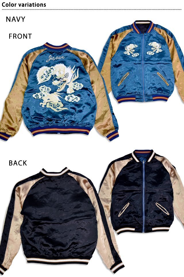 絡繰魂さんから【ZIPANG LUXE】ALL振り刺繍オーバーダイ加工リバーシブルスカジャン「雲龍」(253020)のご紹介です。 絡繰魂の新ライン【ZIPANG LUXE】が誕生しました! 振り刺繍という、針が左右に動く横振りミシンを使って、職人が直接生地に柄を刺繍する技法で製作された、こだわりのスカジャンとなっております。 ボディーには、製品を作った後に染色する「オーバーダイ加工」を採用。 均一に染まらず独特な色味や風合いをお楽しみ頂くことが出来ます。 今回、モチーフの主役に採用されたのは【雲龍】柄。 背中には、レトロなタッチで描かれた雲龍をダイナミックに落とし込みました。 表面はしっかり柄の入ったスカジャンですが、対象的に裏面はシンプルに仕上げ、メリハリを付けました。 ボディーにはレーヨンサテンを使用し、ドレープや陰影がくっきりと現れています。 1枚持っているだけでずっと使えるスカジャン。 | ||||||||||||||||||||