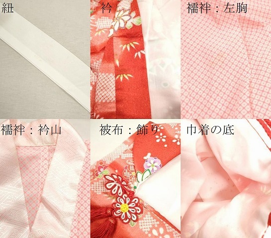 【祝着】 身丈 86.5cm(肩から) 裄丈 42cm(肩上げ 2.5cm) 袖丈 56cm 縫込み 1.5cm 袖幅 27cm 前幅 15.5cm 後幅 20.5cm 着物縫いこみ 内揚げ 0cm (腰上げ 0cm) 裄 お袖側 約0.5cm 身頃側 約1cm 【被布】 身丈 48cm(肩から) 裄丈 14cm(肩上げ 2cm) 【長襦袢】 身丈 72cm(肩から) 裄丈 38.5cm(肩上げ 2.5cm) 袖丈 55cm 縫込み 0cm 袖幅 24.5cm 前幅 15.5cm 後幅 21cm 着物縫いこみ 内揚げ 0cm (腰上げ 0cm) 裄 お袖側 約2.5cm 身頃側 約1cm 《 サイズについてはこちら 》 |