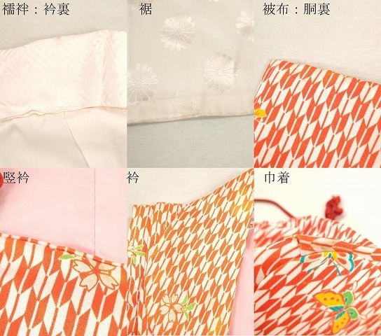 【祝着】 身丈 95cm(肩から) 裄丈 50cm(肩上げ 4.5cm) 袖丈 66cm 縫込み 2cm 袖幅 31cm 前幅 20.5cm 後幅 28.5cm 着物縫いこみ 内揚げ 0cm (腰上げ 6.5cm) 裄 お袖側 約1.5cm 身頃側 約0.5cm 【被布】 身丈 48.5cm(肩から) 裄丈 13cm(肩上げ 2.5cm) 【長襦袢】 身丈 95cm(肩から) 裄丈 48.5cm(肩上げ 4.5cm) 袖丈 66cm 縫込み 2cm 袖幅 30.5cm 前幅 20cm 後幅 28cm 着物縫いこみ 内揚げ 0cm (腰上げ 8cm) 裄 お袖側 約1.5cm 身頃側 約0.5cm 《 サイズについてはこちら 》 |