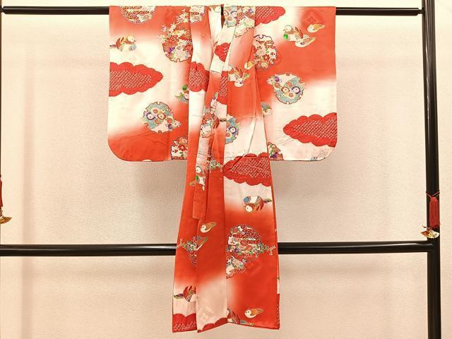 【祝着】 身丈 99.5cm(肩から) 裄丈 36.5cm(肩上げ 4cm) 袖丈 50.5cm 縫込み 3.5cm 袖幅 28.5cm 前幅 16.5cm 後幅 21.5cm 着物縫いこみ 内揚げ 0cm (腰上げ 0cm) 裄 お袖側 約0cm 身頃側 約1cm 《 サイズについてはこちら 》 |