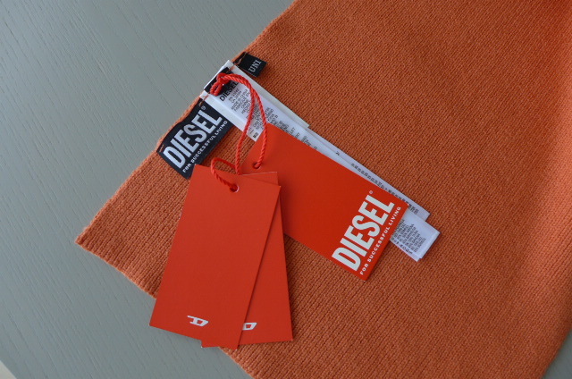 ディーゼルジャパン取り扱い…さりげないロゴとオレンジが目を惹くユニセックスマフラーのご紹介です。