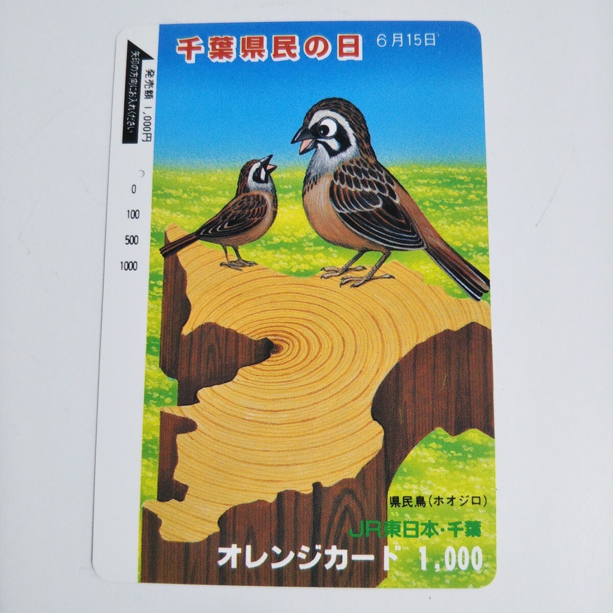 JR東日本・千葉 千葉県民の日 6月15日 県民鳥(ホオジロ) オレンジカード 使用済み 1穴