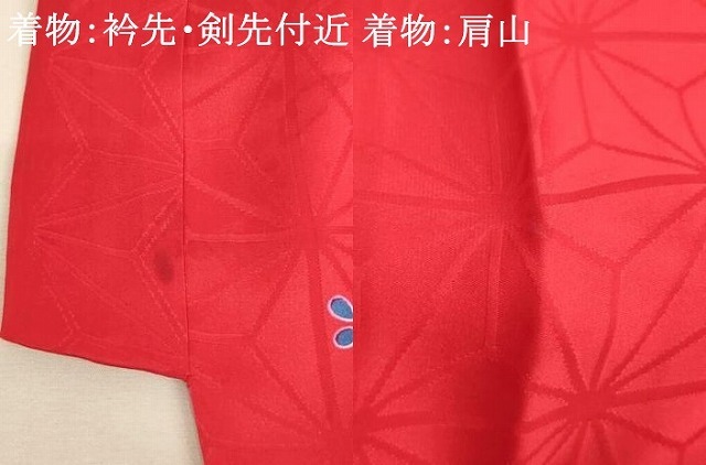 着物【正絹】の状態は接写画像のように衿先・剣先付近に汚れ、肩山に薄い汚れがございますが その他特に目立ったシミ汚れなどもなく大変良い状態です。 長襦袢【化繊・単衣・半衿刺繍】の状態は特に目立ったシミ汚れなどもなく大変良い状態です。 大変上質な逸品になります。 お安く出品致しますので、是非この機会にいかがでしょうか? |