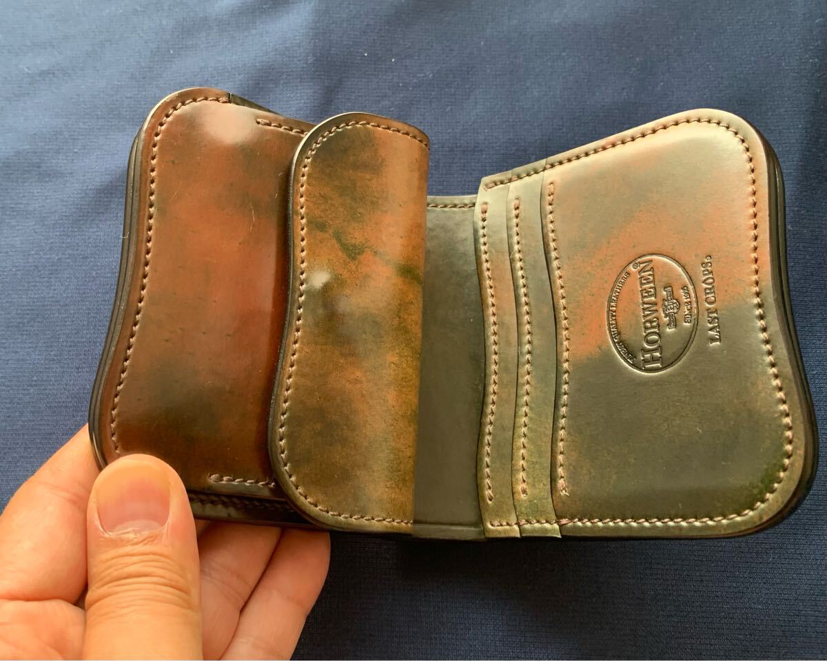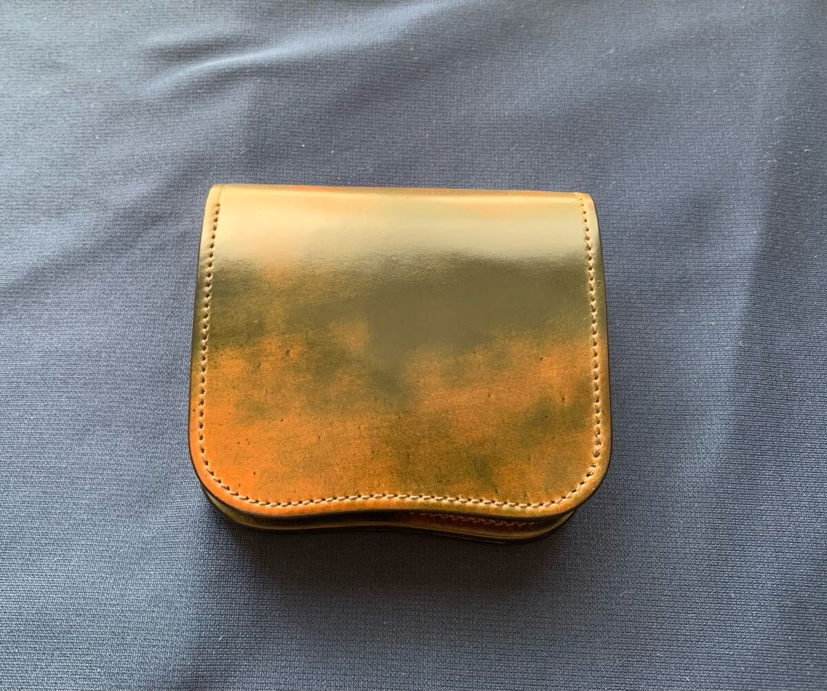 HORWEEN社のシェルコードバンを使って製作されたラフアウトシリーズ。HORWEEN社公認刻印入りでフルコードバンモデルの二つ折り財布となります。