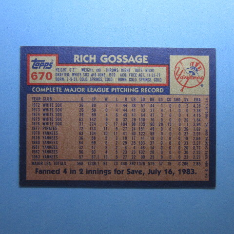 MLB 1984 Topps #670 Goose Gossage (HALL-OF-FAME)