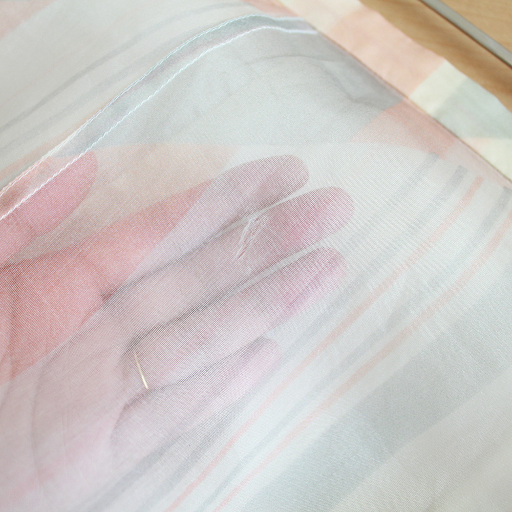 ピンク系の配色のシアーテキスタイルに、