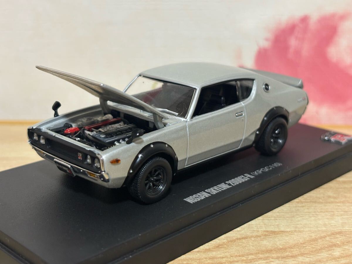 送料無料 1/43 京商 日産 スカイライン 2000GT-R KPGC110 シルバー ミニカー KYOSHO NISSAN SKYLINE 旧車 ケンメリ ワタナベホイール