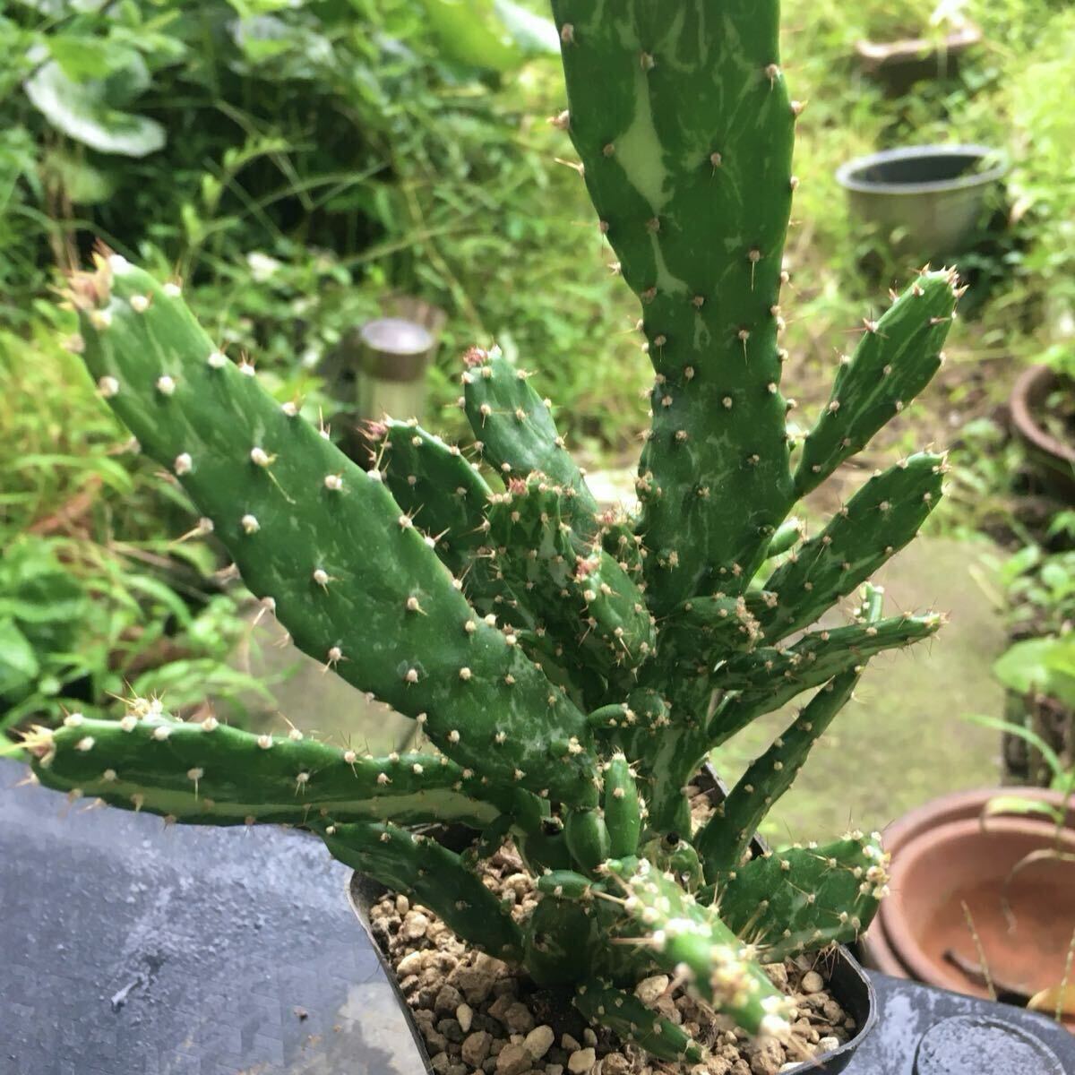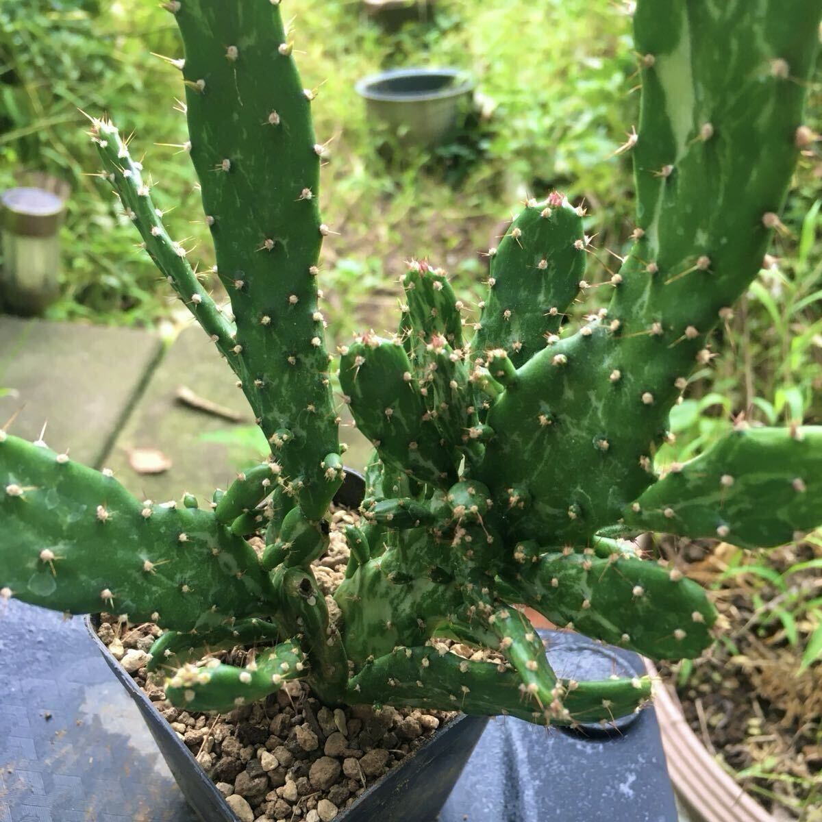 ウチワサボテンの仲間で独特な形をした平たく丸い葉が特徴的で比較的育てやすい品種です。