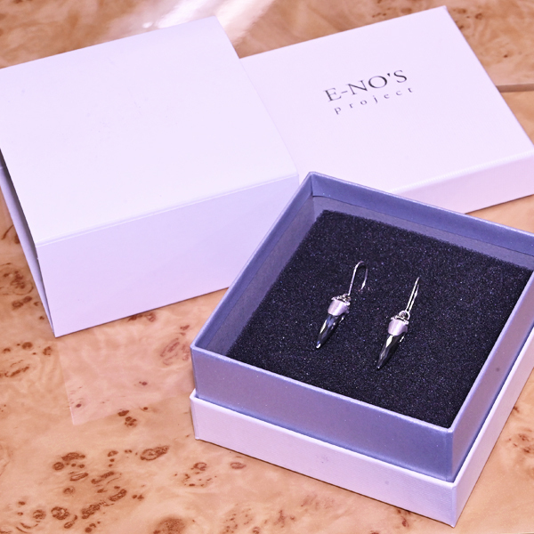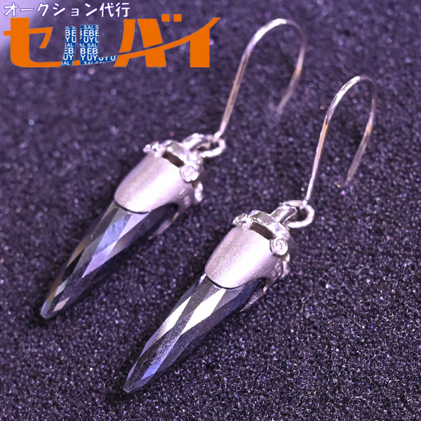 モデル | K18ホワイトゴールド×ダイヤモンド ヘマタイト ファング ピアス |