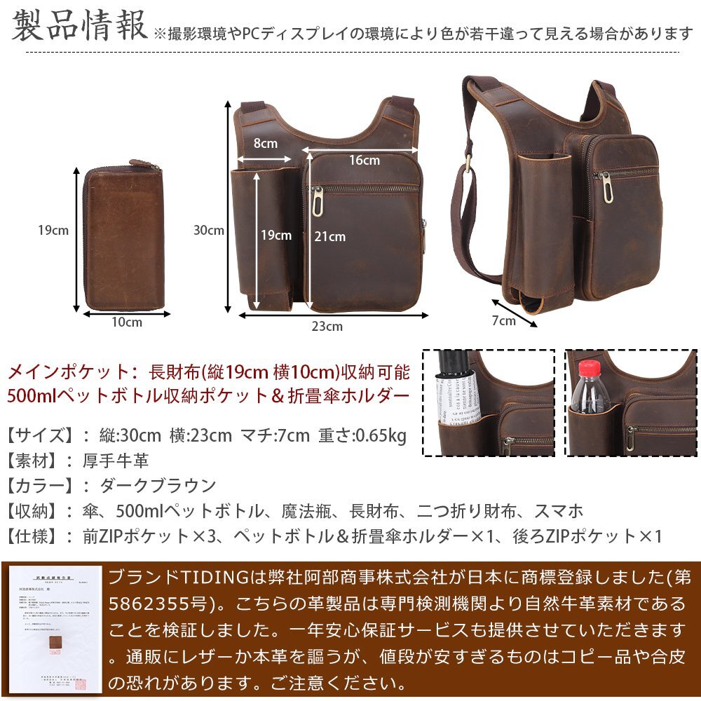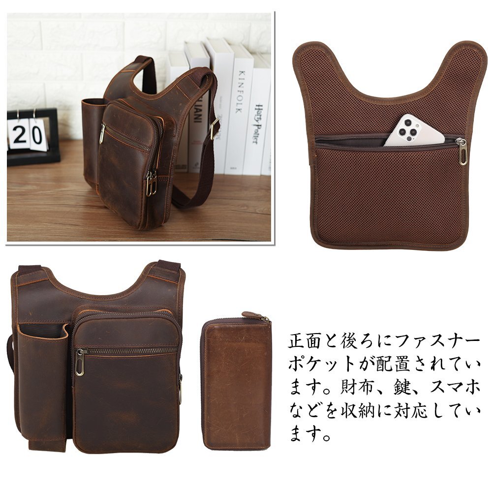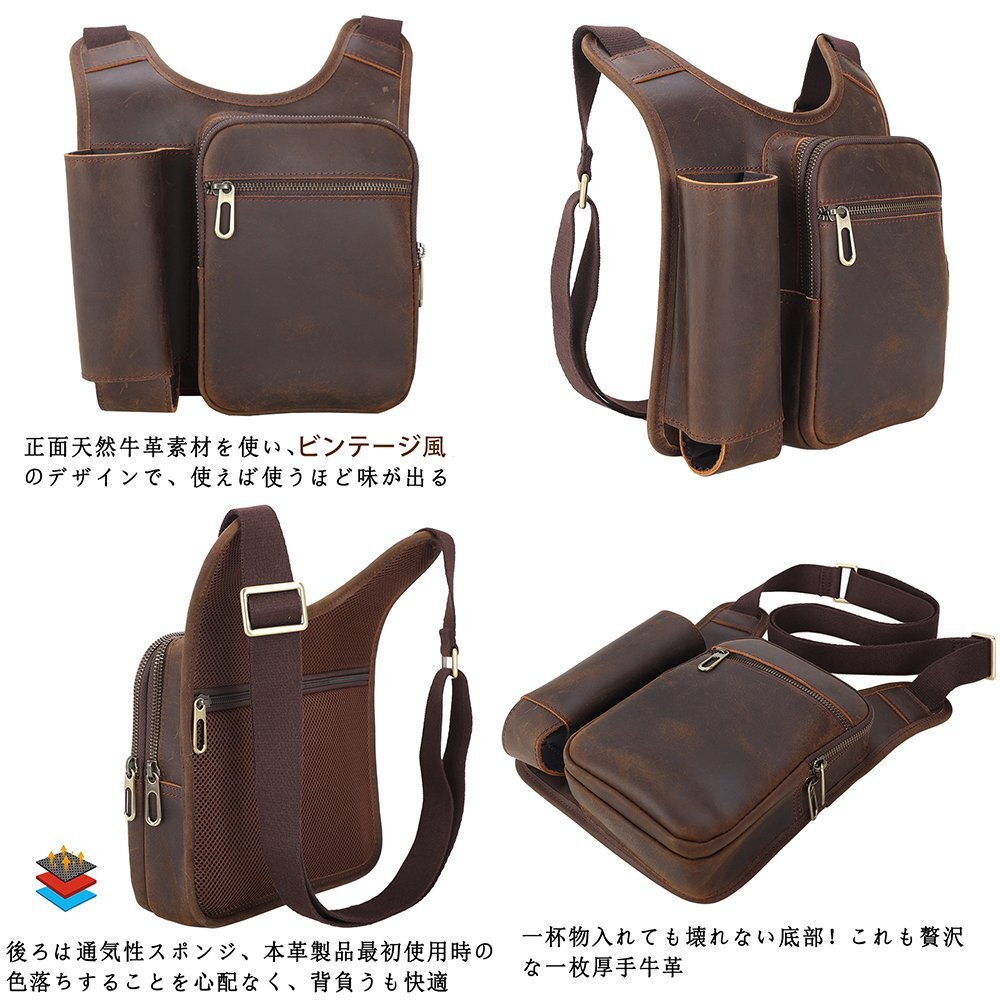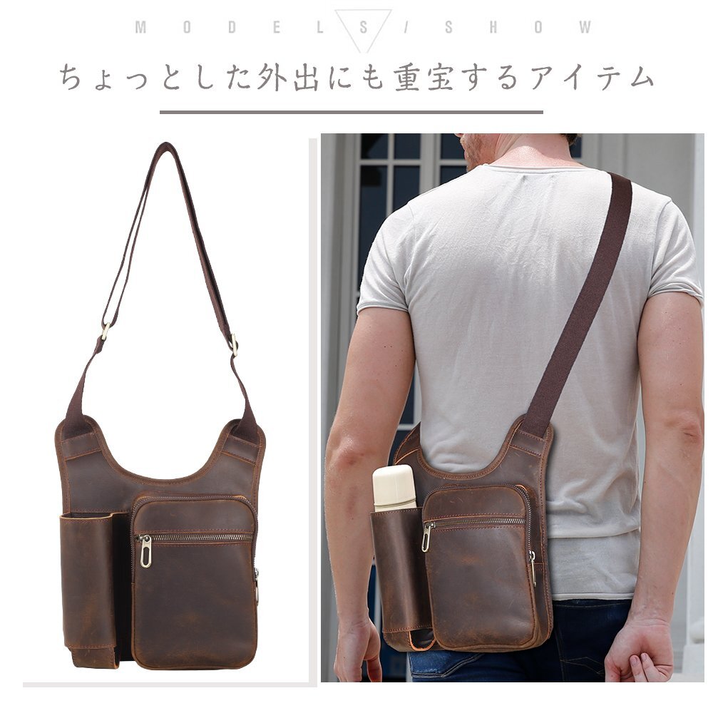 TIDING 水収納室あり 本革 ショルダーバッグ 斜め掛けバッグ レトロ風 スポーツ アウトドア鞄 ブラウン