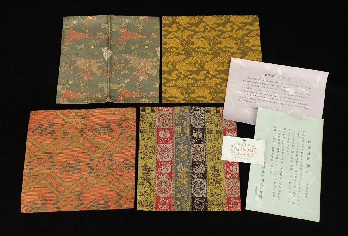 ▲和装品204 美品 龍村織物他 古帛紗/袱紗 4点▲正絹/紅牙瑞錦/有栖川鹿文/雲鶴文紹/ 花鳥狩猟紋/龍村美術/茶道具/和装小物/消費税0円