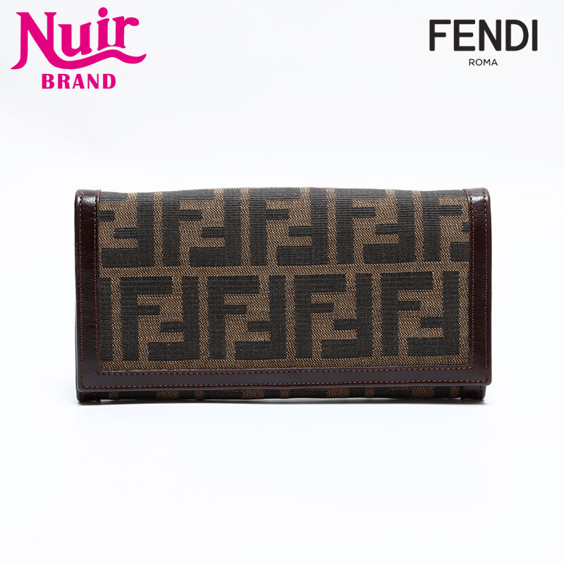 フェンディ FENDI 三つ折り財布 ズッカ キャンバス 長財布 ブラウン