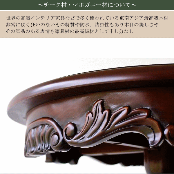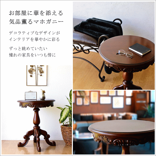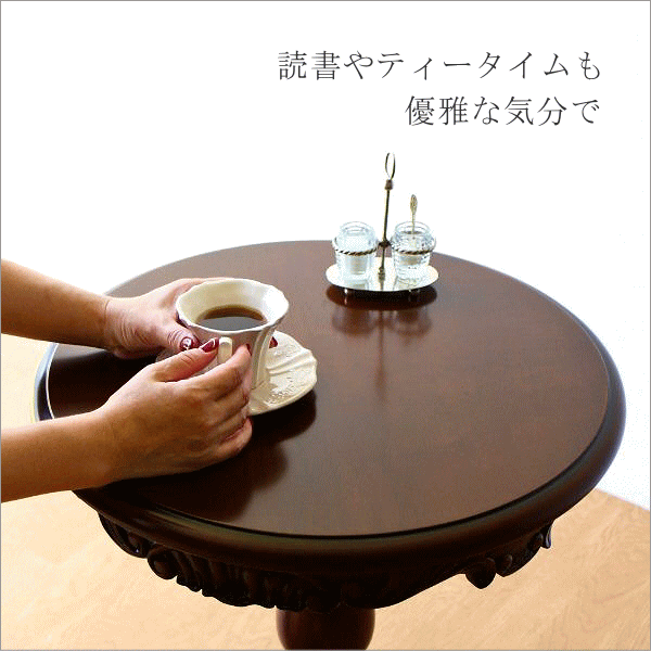 | マホガニーの木目と光沢が美しい インドネシアの高級材料 マホガニー無垢材で作られた 4本足のラウンドテーブル 飾り彫刻や脚など 重厚感のあるデザインは 実用に加えてインテリア性が高いので お部屋の感じも シックでおしゃれに決まりそうです マホガニーラウンドテーブルC 商品番号:diz3527 サイズ(cm):幅50×奥行50×高さ59.5 支柱直径:9 材質 : マホガニー材 重量 : 約6.5kg 塗装 : ラッカー 組立状態 : 完成品 生産国 : インドネシア ※床のキズ防止フェルトを貼ってお届けします ※天然木使用品につき、木目や節・色合いの違い等は木の表情としてご了承ください |