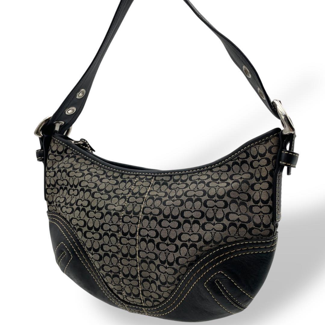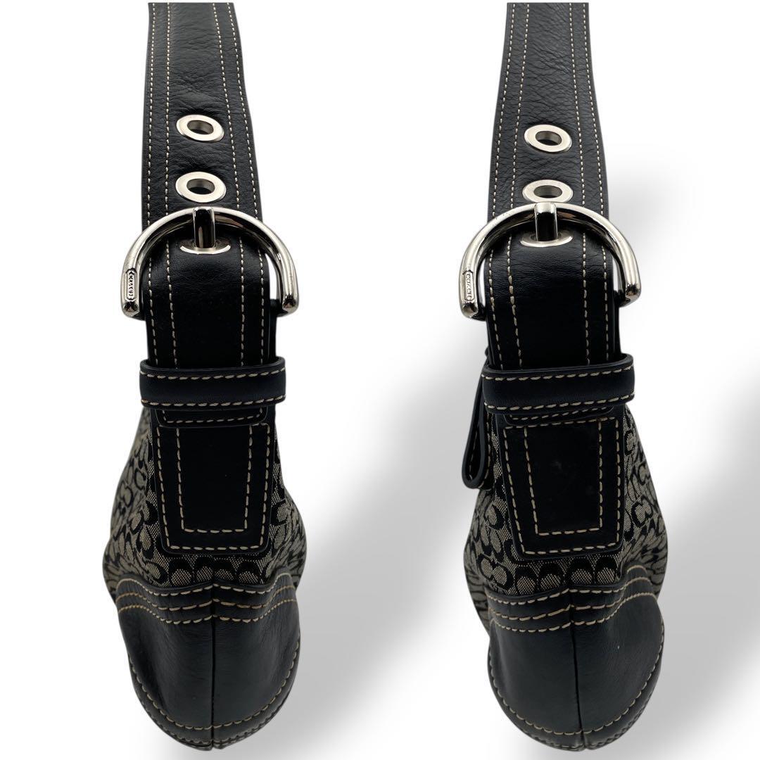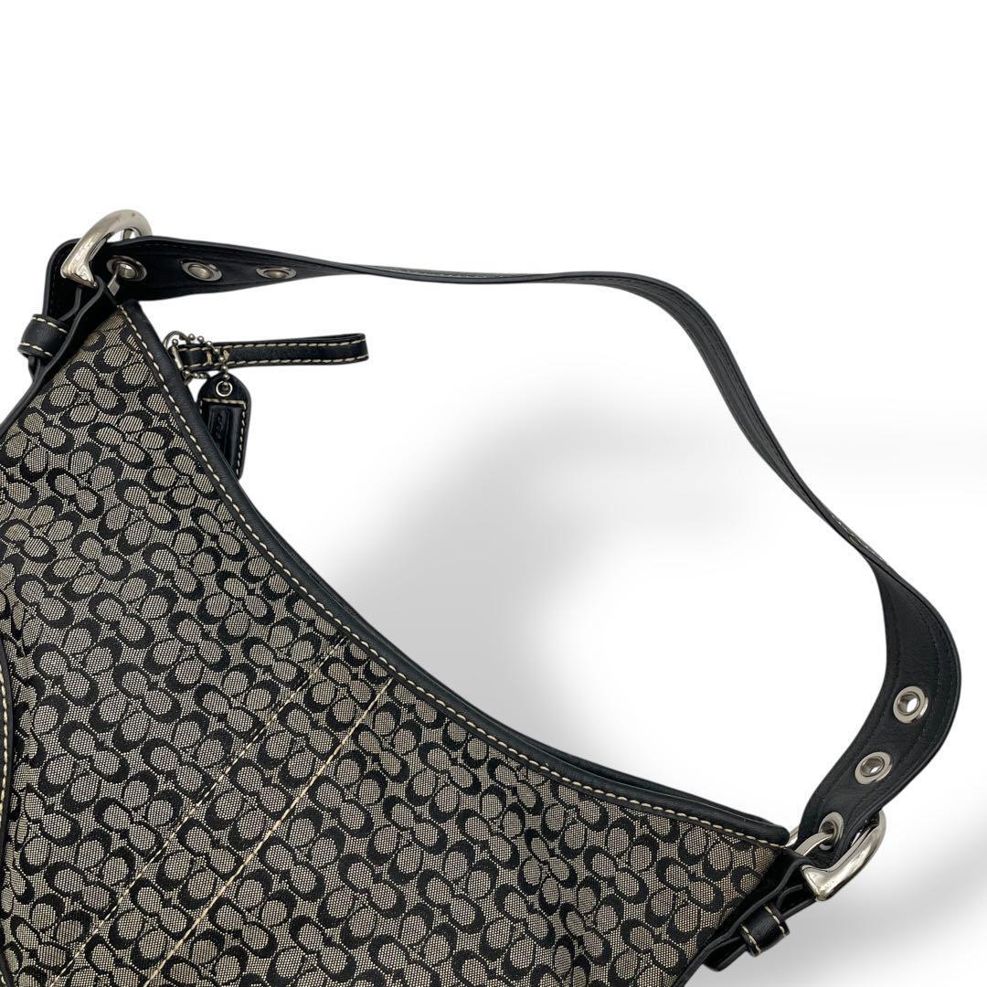 COACH ショルダーバッグ キャンバス レザー ブラック シグネチャー ホーボー 2154