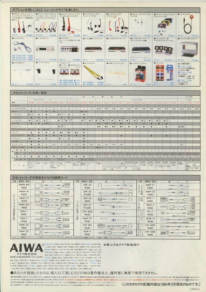 AIWA カセットレコーダラジオ('84-3) 総合カタログ