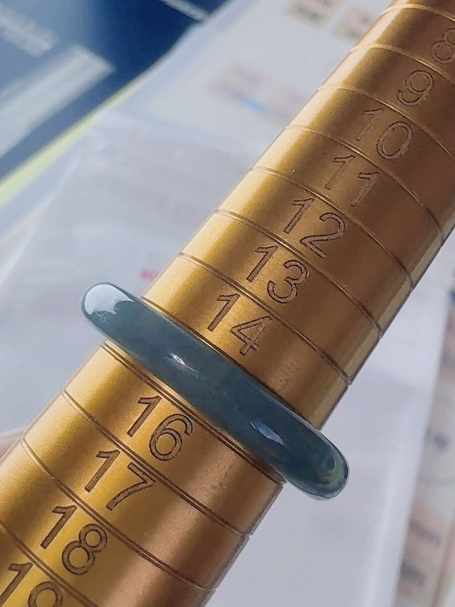 R2-02177天然本翡翠《本物保証》 藍水翡翠 指輪約15号 一点物 希少 縁起物 お守り 魔除け 昇進 成功 風水 金運 財運 幸運 幸福