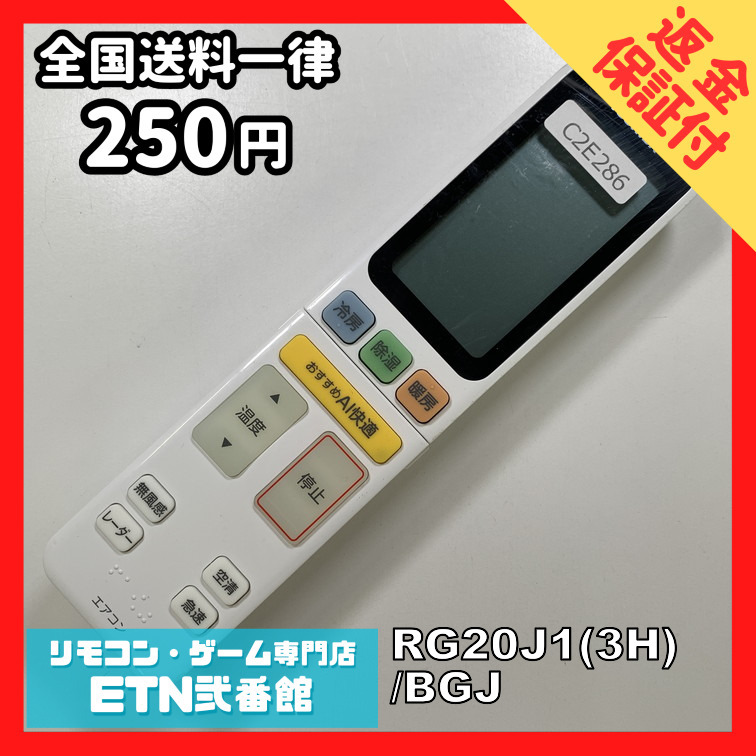 C2E286 【送料250円】エアコン リモコン / TOSHIBA 東芝 RG20J1(3H)/BGJ 冷房 暖房 動作確認済み★即発送★