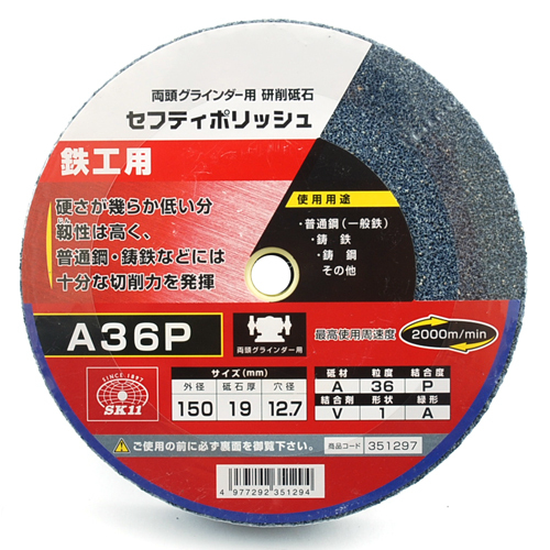 SK11 研削砥石 鉄工用 150x19mm A36P セフティポリッシュ 両頭グラインダー用 研削 電動砥石 部品 パーツ